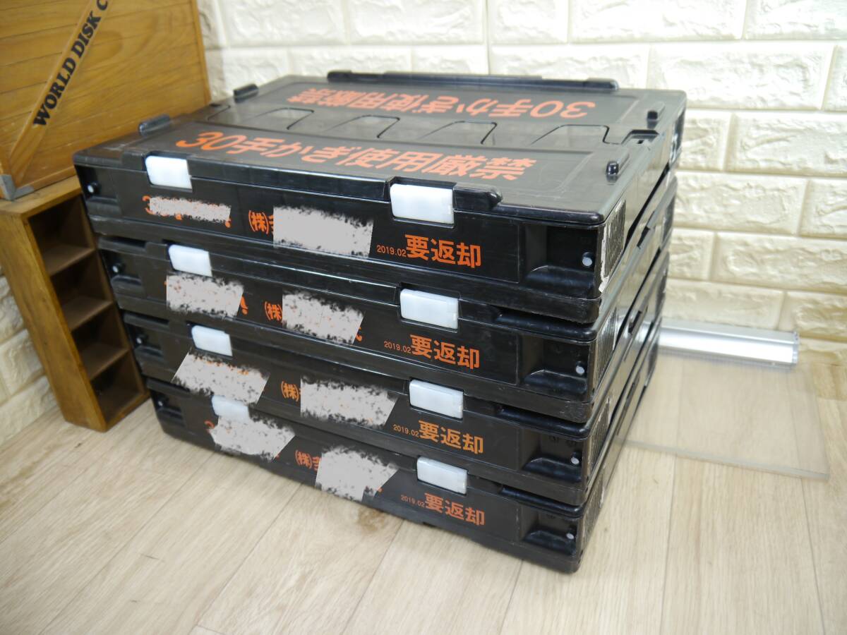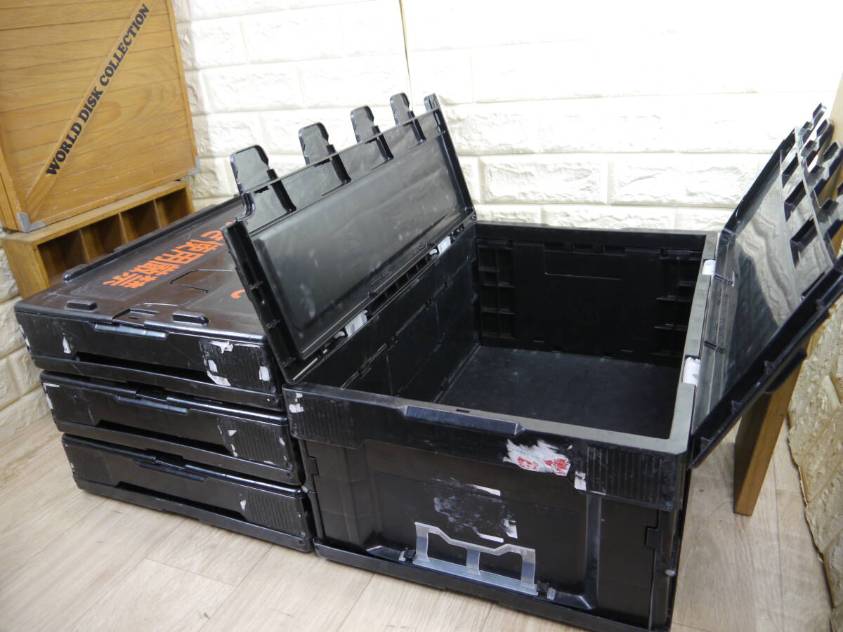 ◆頑丈◆4個セット◆サンコー サンクレットオリコン P31B フタ一体型 34.8L ブラック◆業務用 ガレージ パーツ 収納 折りコン コンテナ