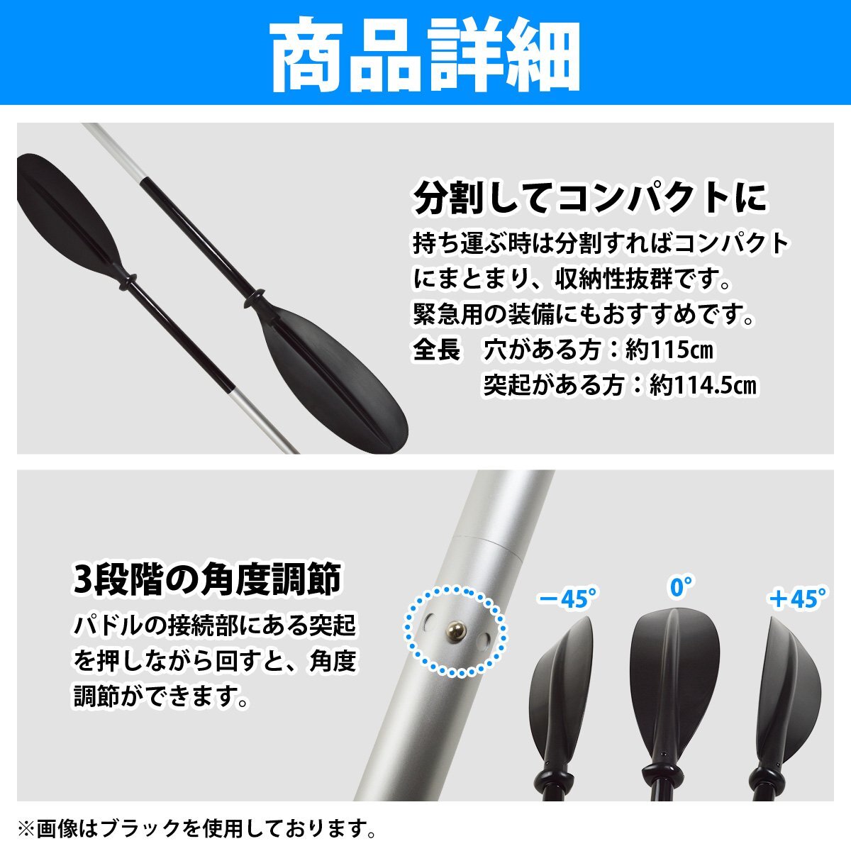 【新品即納】『全長222cm』3段階の角度調整が可能 カヤック パドル 『黒/ブラック』ボート ゴムボート カヌー アルミ製 オール 海 川 湖