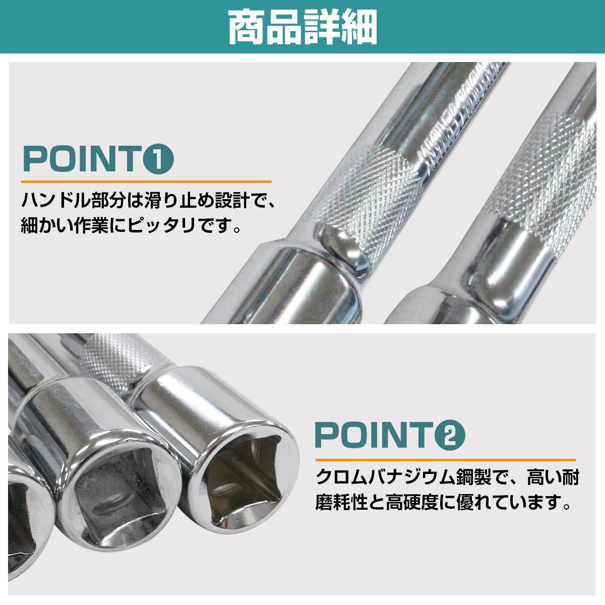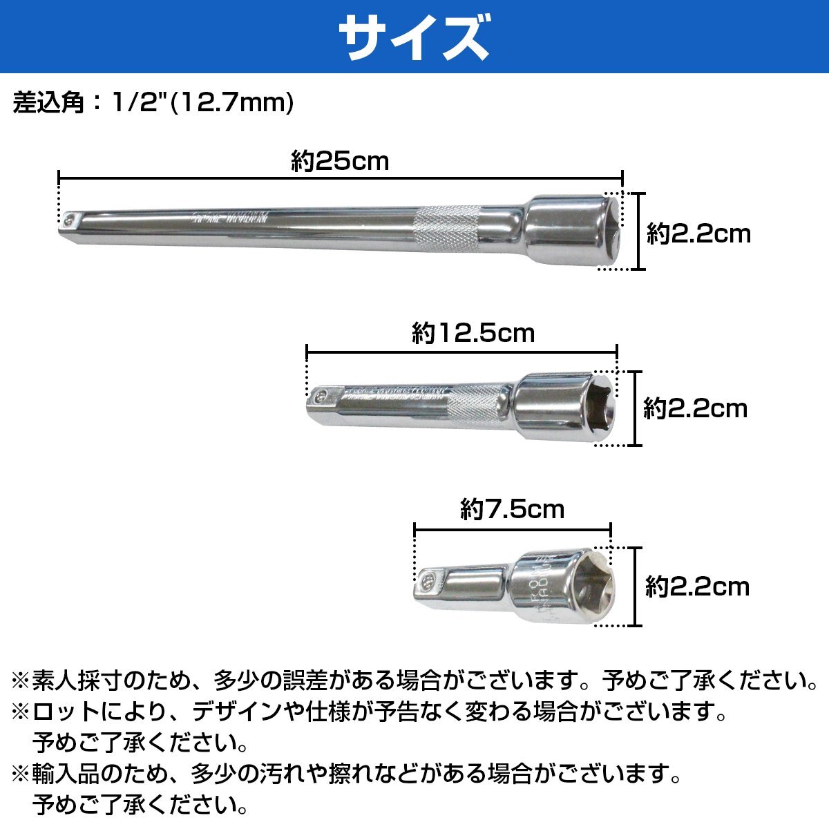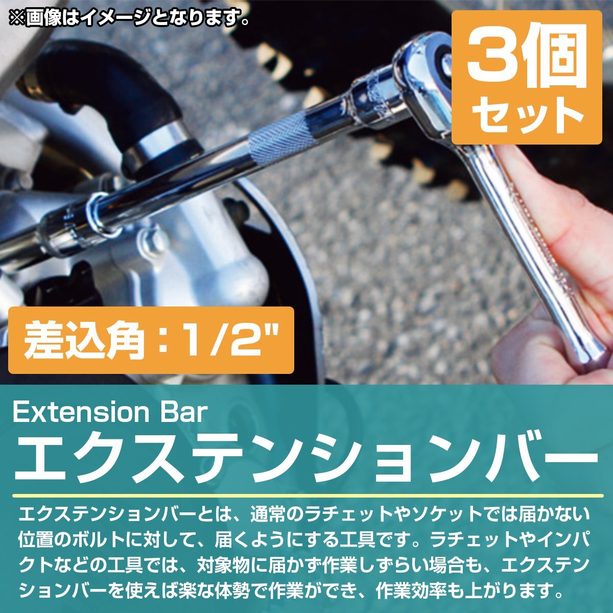 【送料無料】エクステンション バー 3本 セット 差込角 1/2 12.7mm 250mm 125mm 75mm 工具 車 バイク 整備 ソケット 延長 延長棒 滑り止め