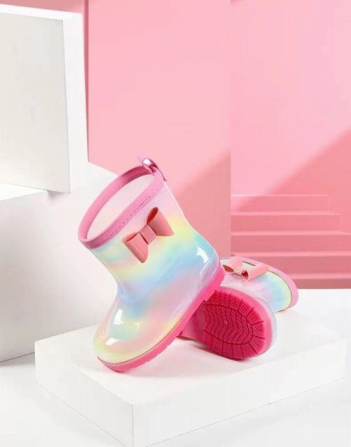 雨靴 子供 子供靴 レインシューズ レインブーツ リボン 虹 レインボー 長靴 滑り止め キッズ ショートブーツ レインボー17cm