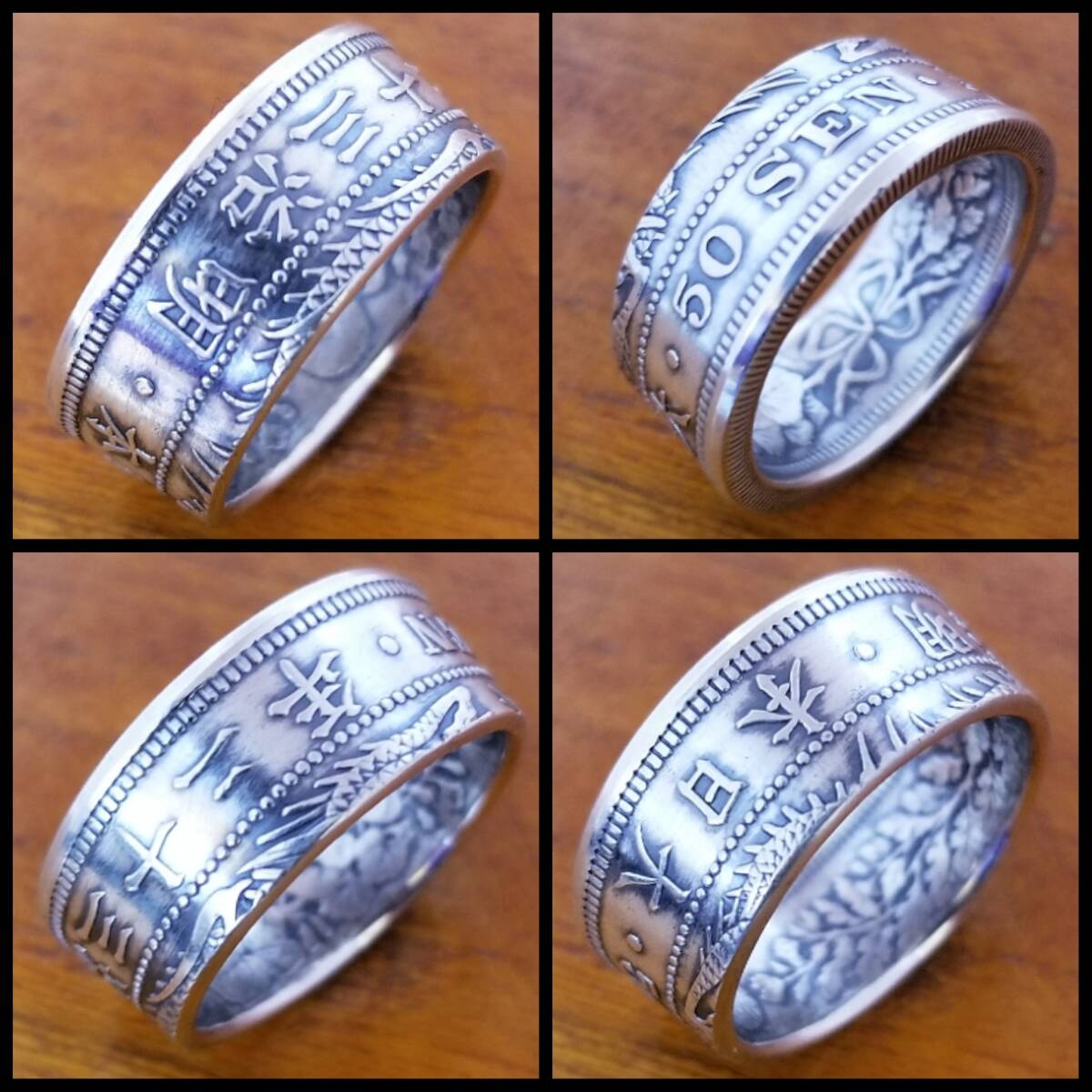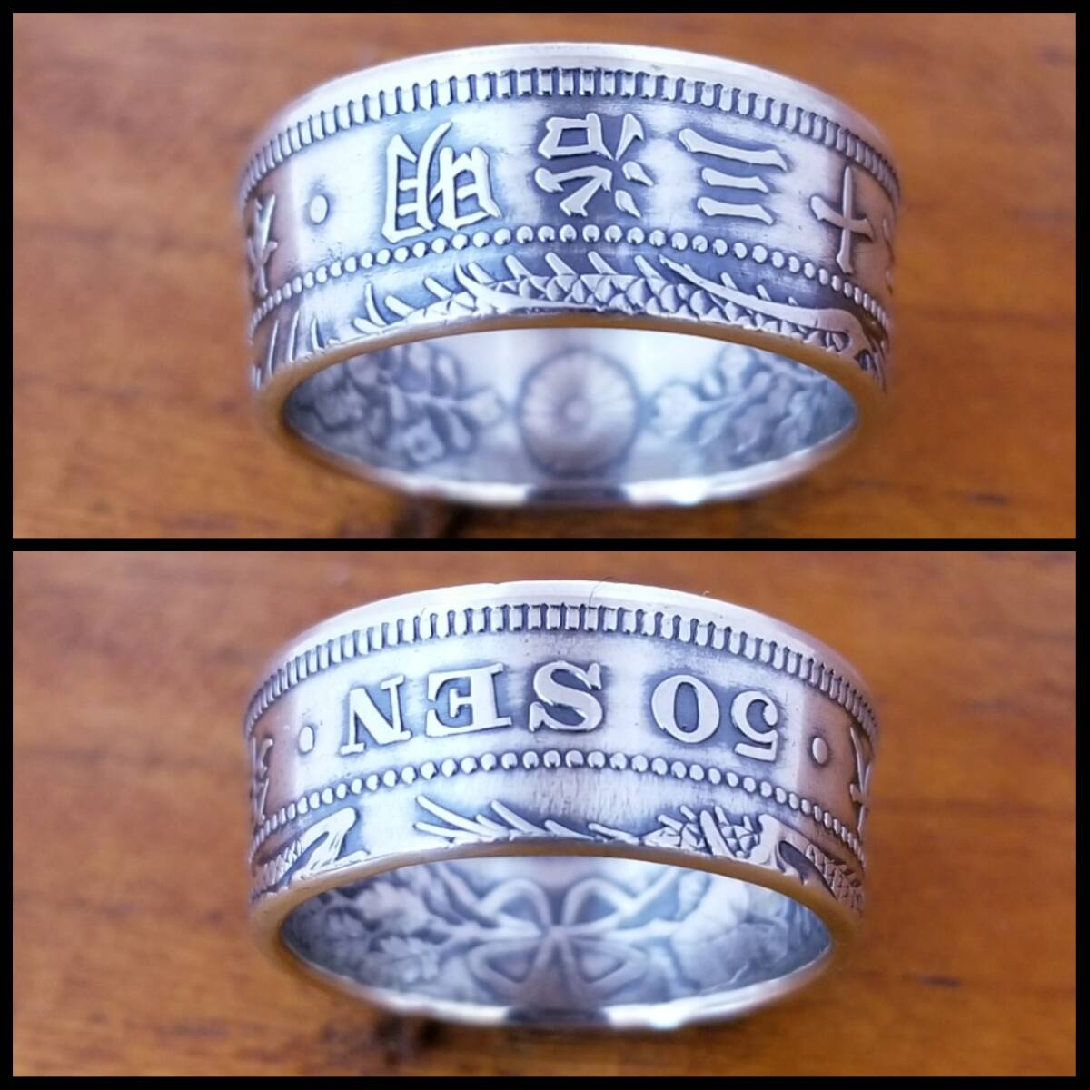 日本のアンティーク銀貨を加工してコインリングを作成いたします。