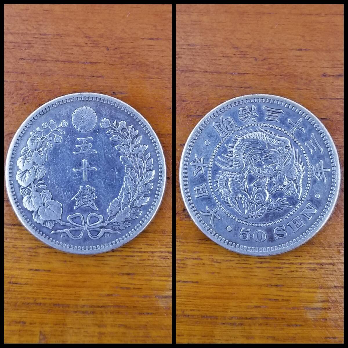 コインリング 日本 50銭銀貨 竜 竜面 シルバーリング 古銭指輪 SV800 AHD