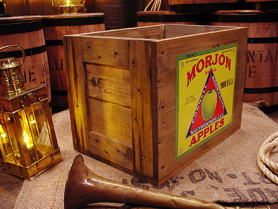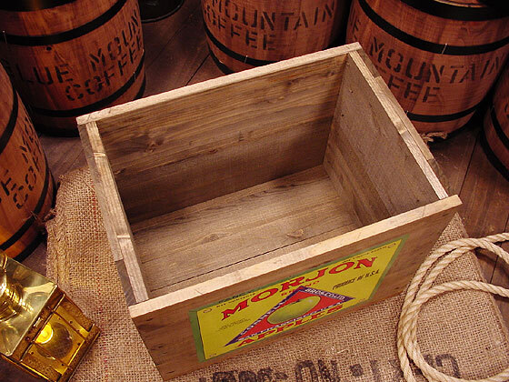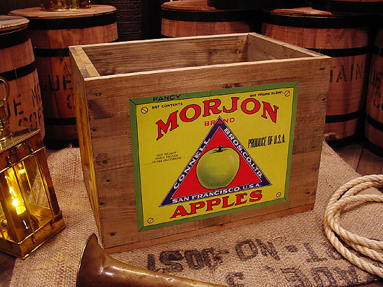 アメリカの農園から出荷される際にみんな「我こそは一番!」とばかりに独自のラベルを木箱に貼り付けて全米に出していたんです。そんな当時のフルーツ木箱を見事に再現した商品がこの木箱です。
