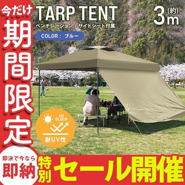 【数量限定セール】テント タープテント ワンタッチ 3m×3m サイドシート ベンチレーション付属 耐水 日よけ サンシェード アウトドア 新品