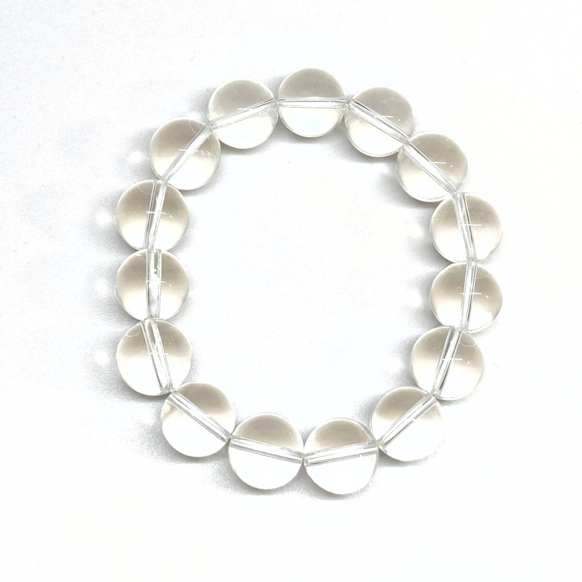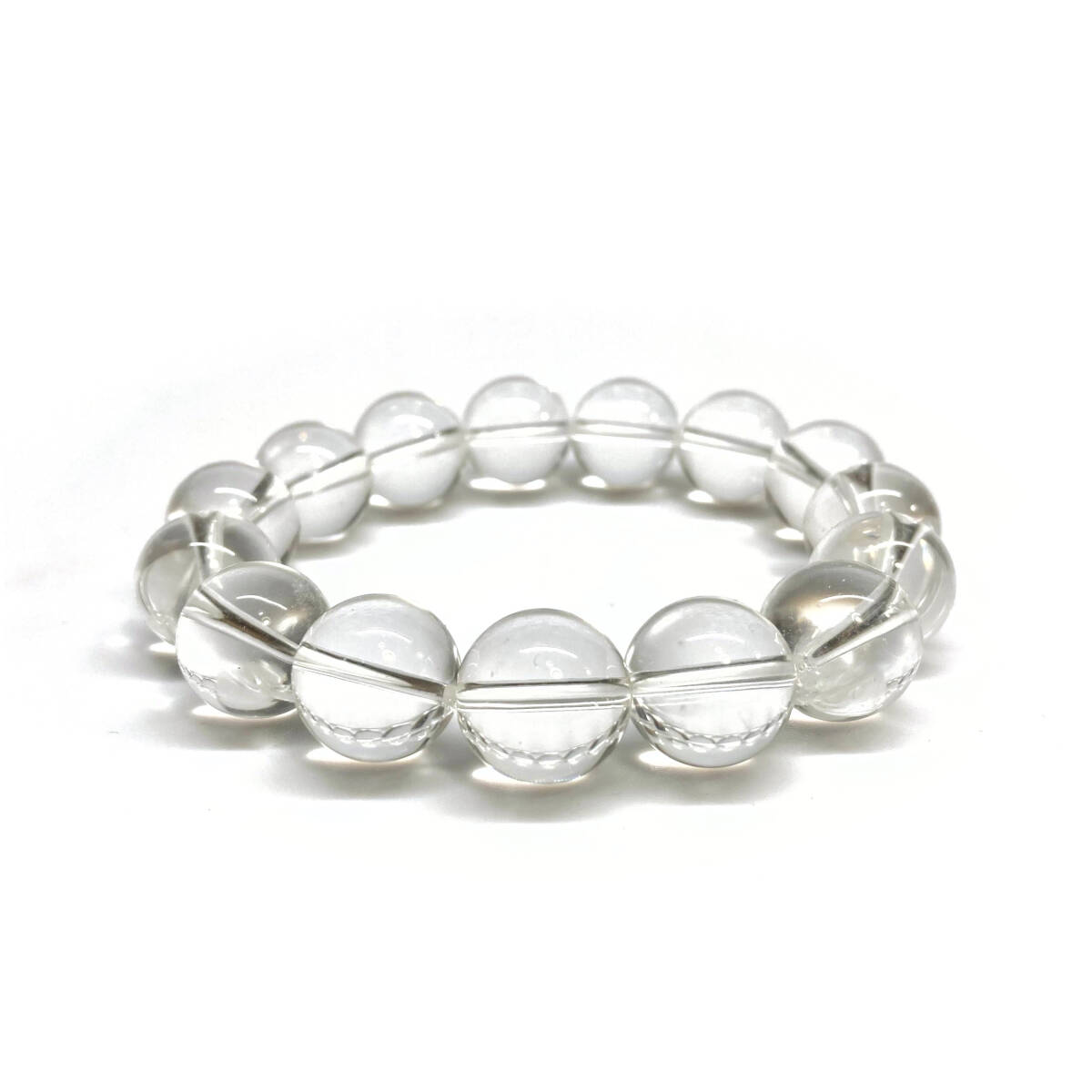 こちらは、水晶の14mm玉を使用したパワーストーンブレスレットです。シンプルなデザインですのでどんなコーディネートとも合わせ易いブレスレットです。程よくインパクトがある14mm玉を使用して内周約17cmです。パワーストーンを付けてる方へのプレゼントにもお勧めです。14mmサイズのリクエストが多々ありましたので少量ですが販売しました。気になる方はお早めにどうぞ。