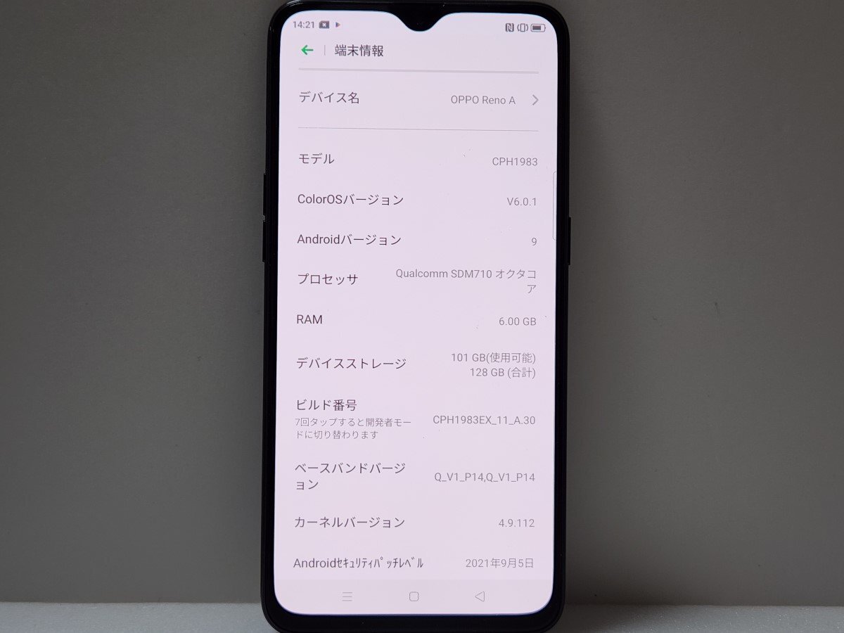 ★【67093WM】 完動品 楽天モバイル OPPO Reno A CPH1983 ブラック 1円 ! 1スタ !