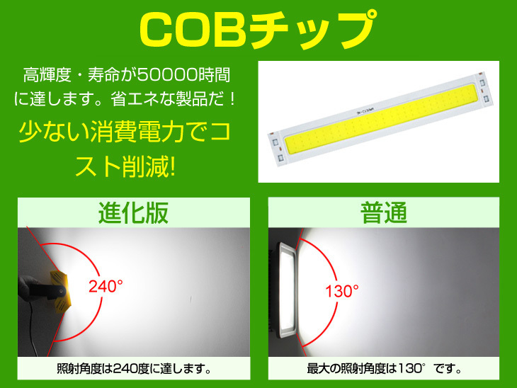 進化版 50W LED投光器 漸く登場! 50Wと省電力で、従来の700W相当の明るさです! IP67規格の防水仕様!照射角度は240度に達します!公園、運動、屋外や現場作業にも便利です!特に、夕暮れ時夜間作業にとても役立ちます! 虫が集まりにくいの も魅力です。 ◆高品質のCOBチップ採用: 照射角度は240度に達します。高輝度寿命が50000時間に達します。省エネな製品だ! ◆優れた放熱性: 優れた6063型アルミ材質を採用、熱伝道スピードは伝統投光器の2倍以上!ヒートシンクには溝があり、空気とタッチする面積が増大します。 ◆防爆耐震ガラス: 耐圧強度が高いの防爆ガラスを採用。安定丈夫な材質で、長時間に使えます。 ◆IP67ラベルの防水性能: 密封性に優れ、IP67相当の防塵防水性能を実現!場所を選ばず様々な用途の照明に使えます。 ◆照射角度調整可能: 回転支えを使えて、お好みに照射角度を調整できます。 ◆広い使用範囲: トンネル、掲示板、ガソリンスタンド、夜間作業、現場工事、駐車場、公園、運動場にも様々な場所で活躍します!公園、運動、屋外や現場作業にも便利です!特に、夕暮れ時夜間作業にとても役立ちます! 虫が集まりにくいの も魅力です。 【保証】 ◆当商品は12っヶ月保証となります。 ◆お届けから1週間以内にご連絡のあった不良品の保証対応の送料は当方が負担いたします。 ◆保証期間内の不良品ですが、交換のみ対応しております。往復送料はお客様負担となります。在庫がない時だけ返金しますので、ご了承ください。 |