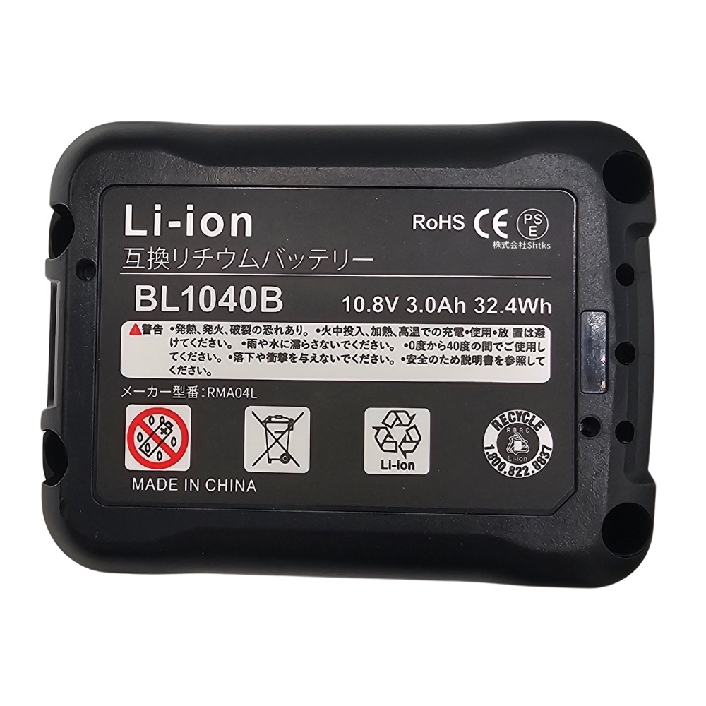 (A) マキタ バッテリー BL1040B 10.8v 3.0Ah 1個 互換 MAKITA BL1040 BL1030 BL1030B BL1015 DC10SA DC10WD 等対応
