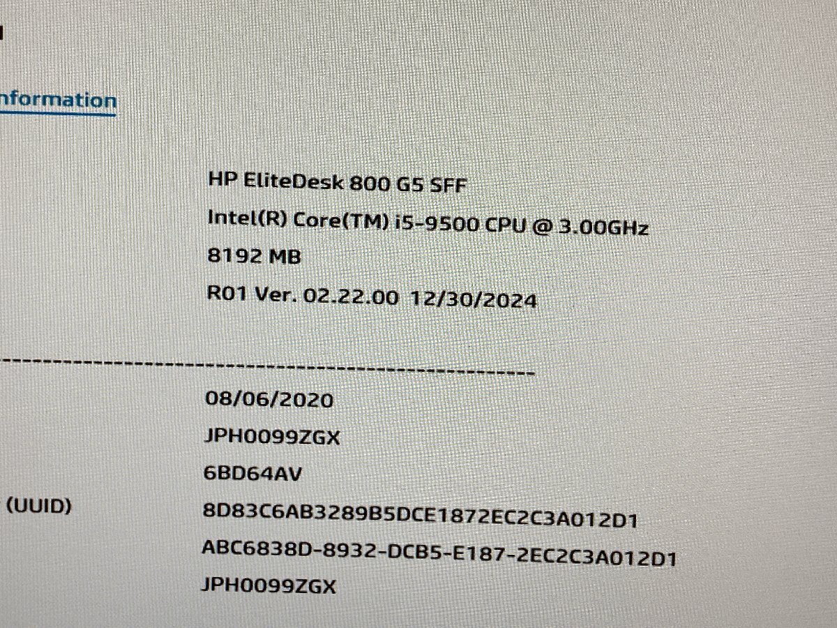 | 品名型番 | EliteDesk800G5SFF | 光学ドライブ | DVDスーパーマルチ |