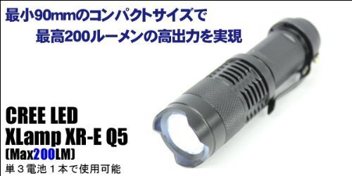 | CREE Q5 LED フォーカス コントロール 小型ハンディライト ブラック |