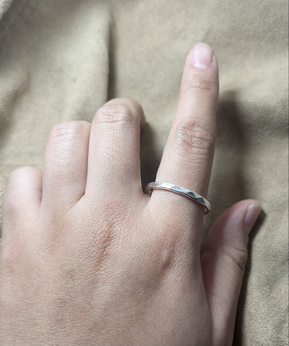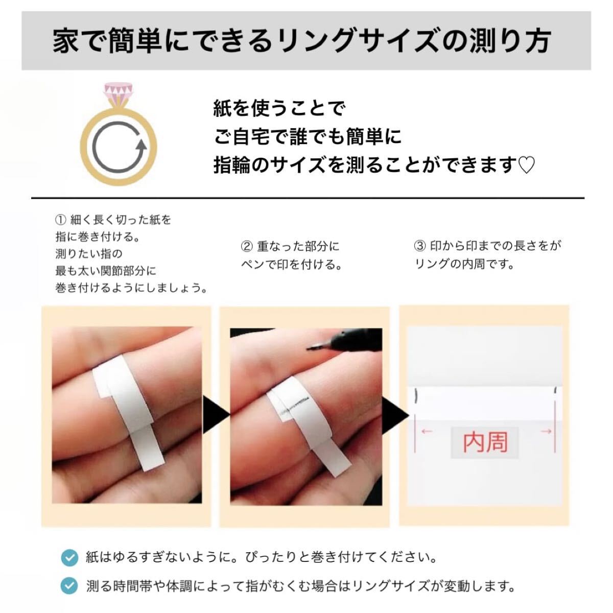 ・幅が広いデザインは通常のリングサイズよりきつく感じますので、0.5~1号程度大きめのサイズが良い場合があります。