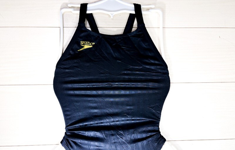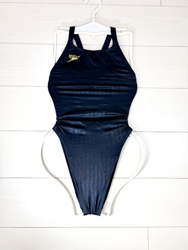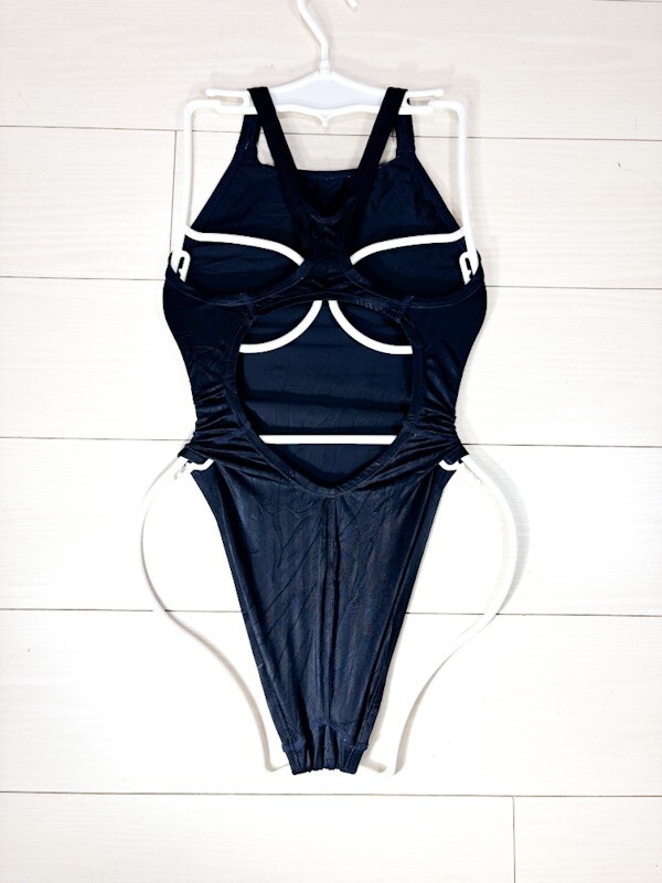 12スピード女子競泳水着M★アクアブレード縦線★薄地★超光沢ダークネイビー濃紺★オープンバックハイレグ★旧ミズノ製