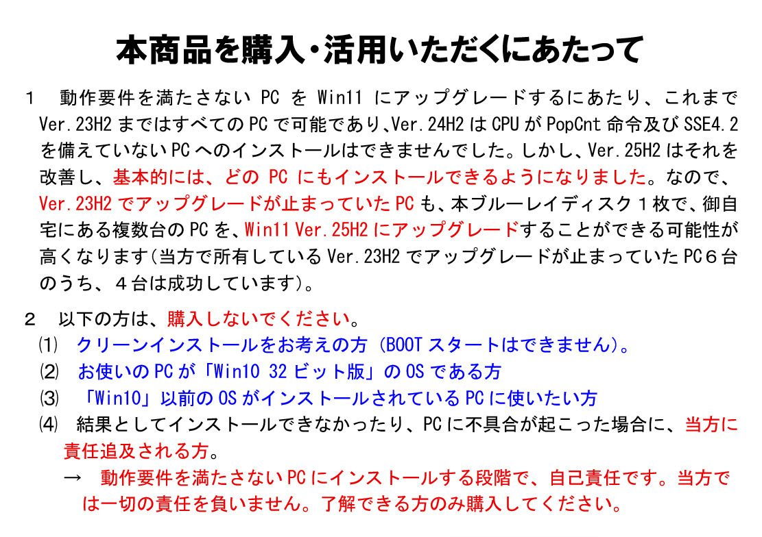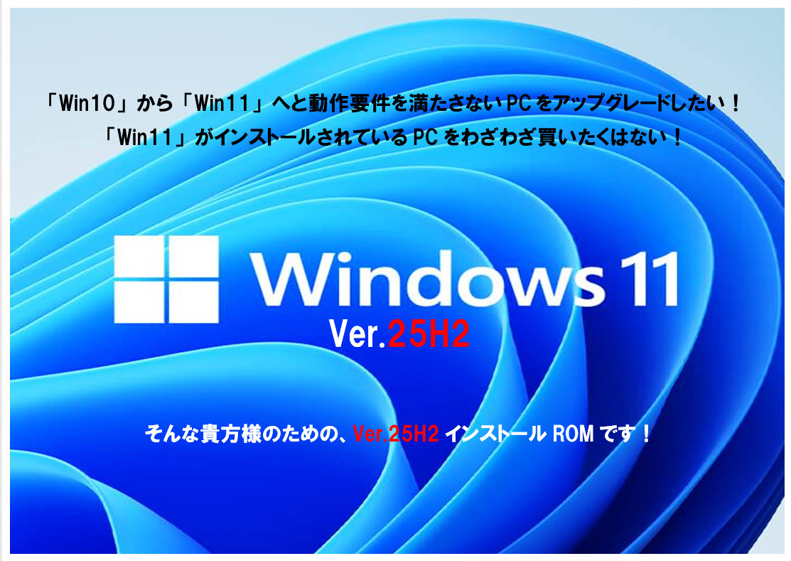 ★過去Ver.23H2および24H2の改良版を御提供した際に、数名の方からROMの不具合やドライブとの相性に関わってデータの読み込みができないとの報告がありました。そのような場合は、一度だけですが無償で再発送いたします。