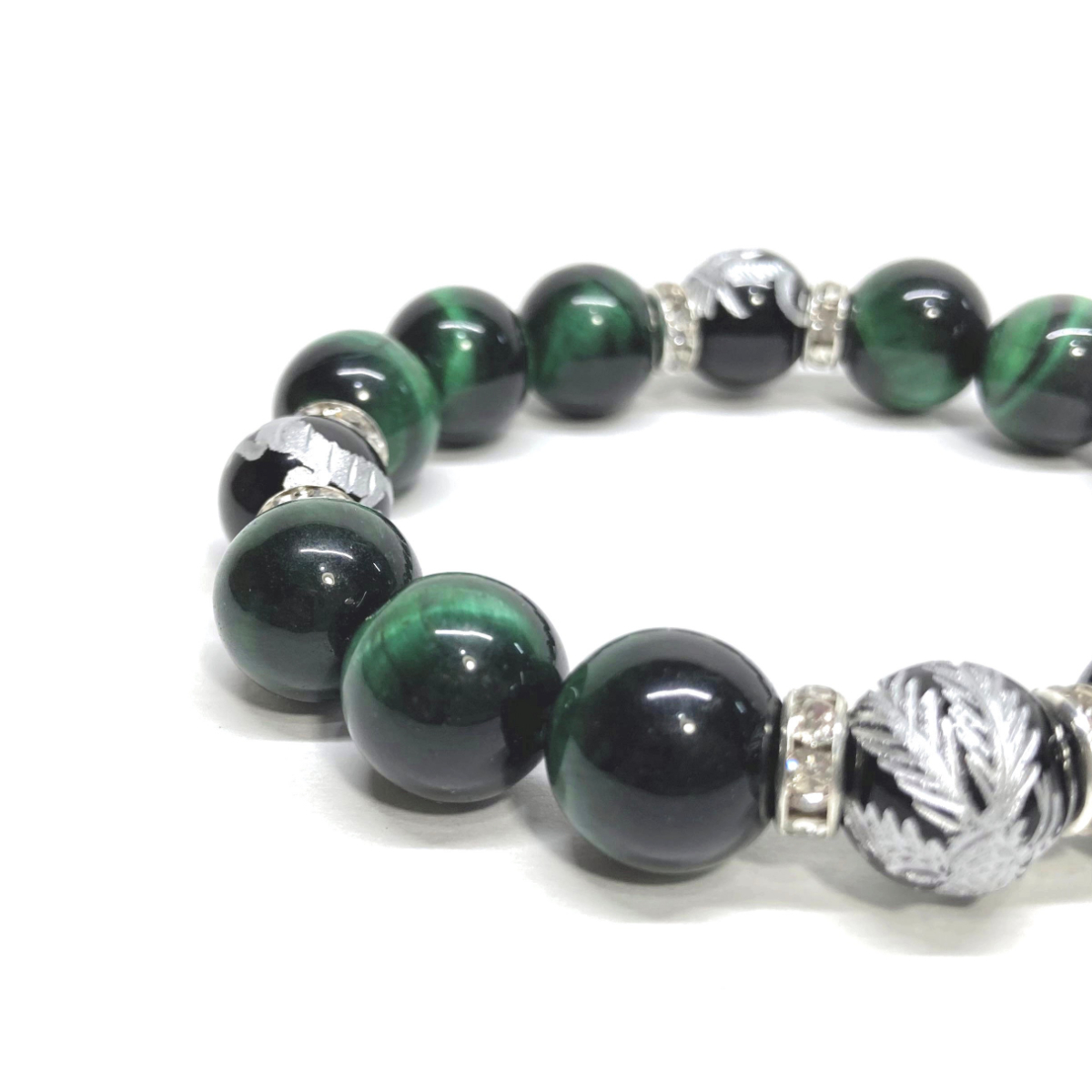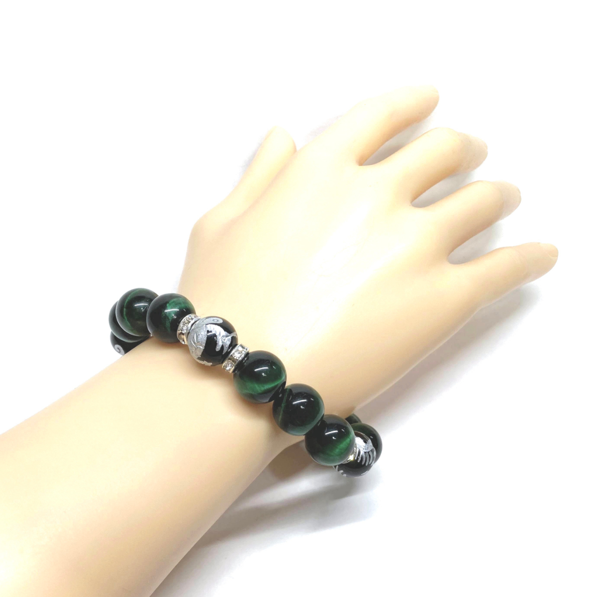 四神獣銀彫オニキス×グリーンタイガーアイ 12mm パワーストーン ブレスレット 天然石 青龍 白虎 玄武 朱雀 運気上昇 開運 金運 お守り S