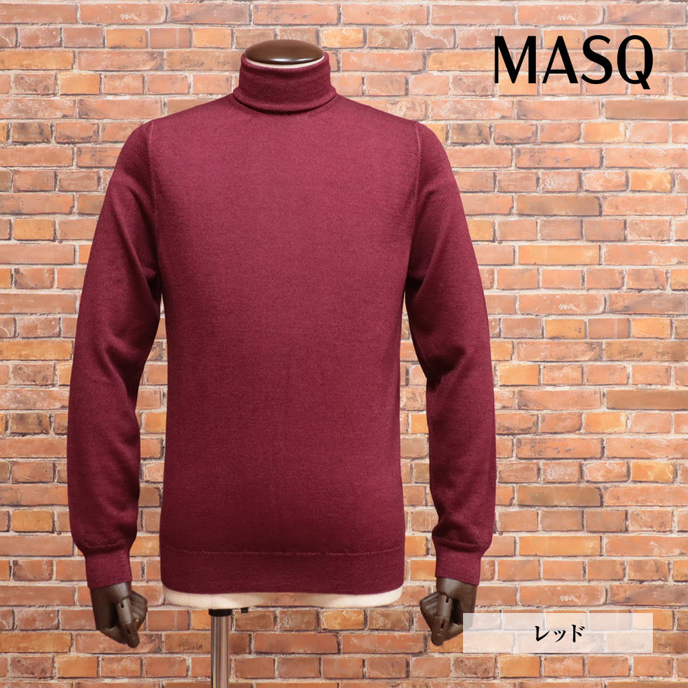 1円/秋冬/MASQ/XXXXLサイズ/長袖ニット イタリア製 タートルネック 製品染め メリノウール Tollegno 1900 新品/赤/レッド/ma394/