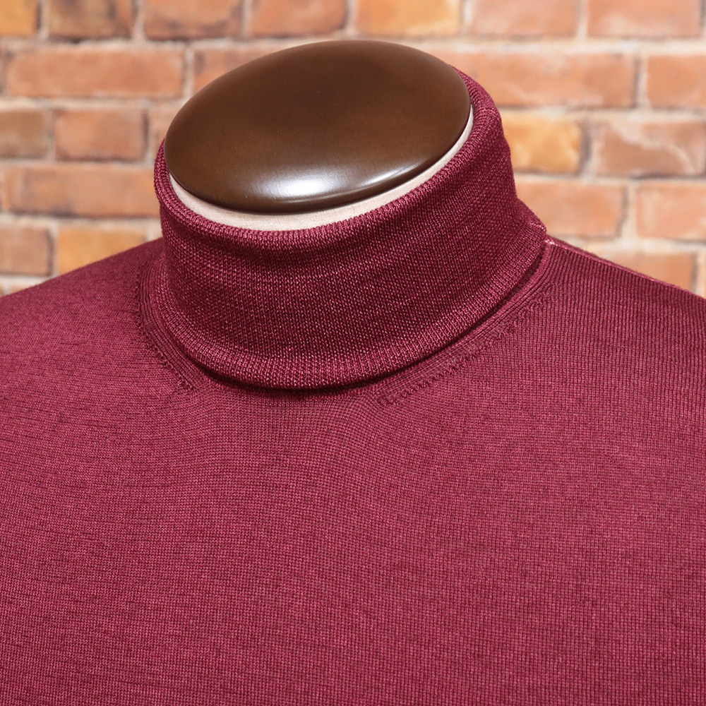 イタリア「Tollegno 1900」製の上質なエクストラファインメリノウールヤーンを使用したタートルネックニット。非常にやわらかく、しっとりとした肌触りが特徴です。薄手ながらも保温性に優れており、軽やかな着心地で秋から春先まで長く活躍します。