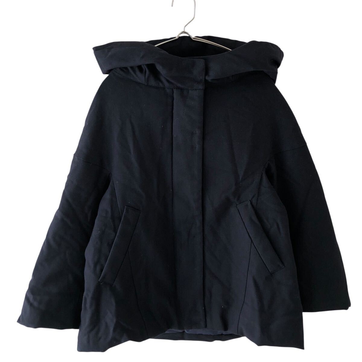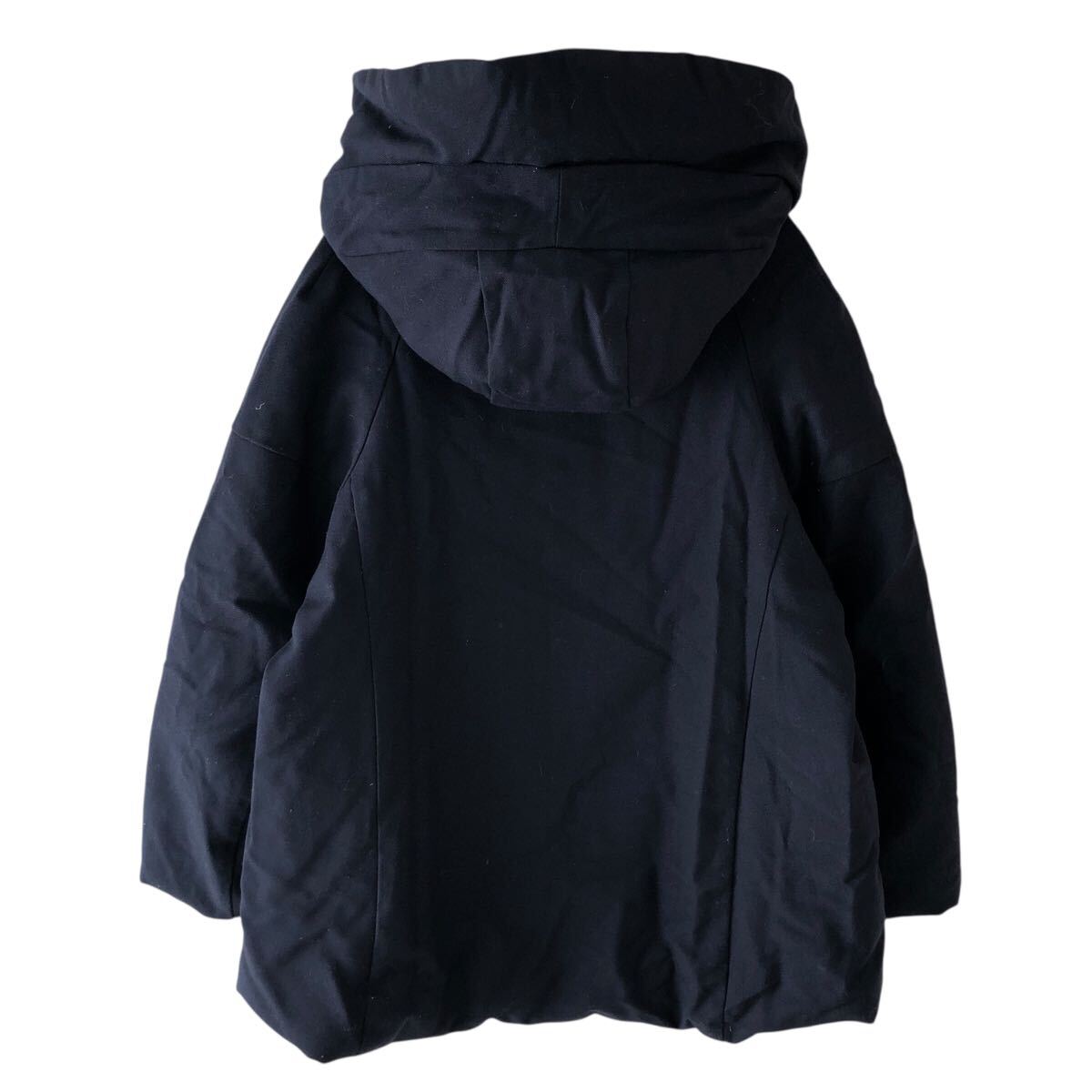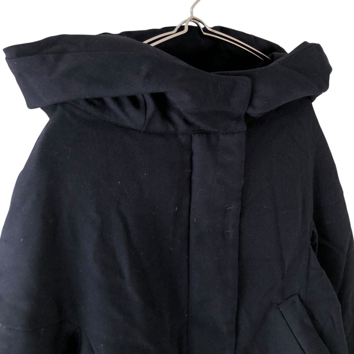 12NG017-71 UNIQLO ユニクロ ダウン90% ダウンジャケット コート フード 7分丈 裏地 防寒 ファスナー ボタン レディース M ブラック 黒