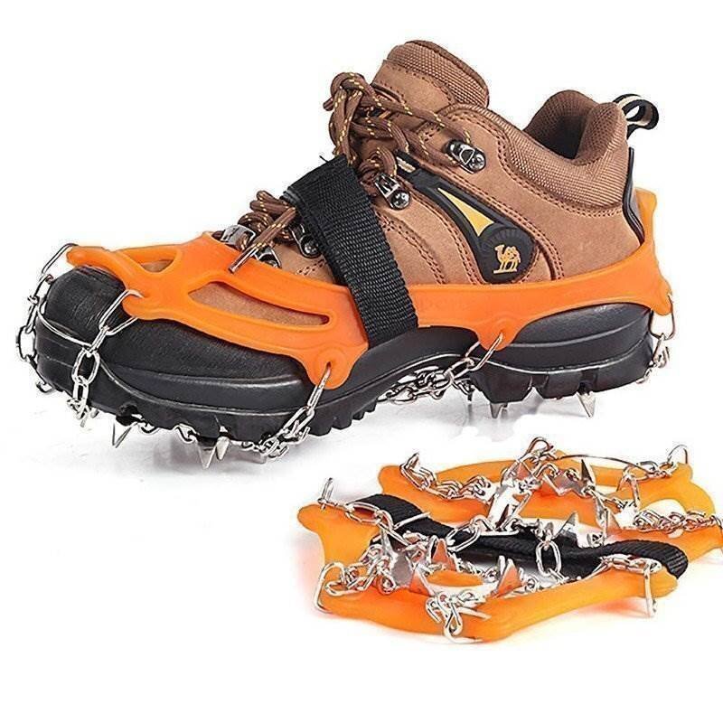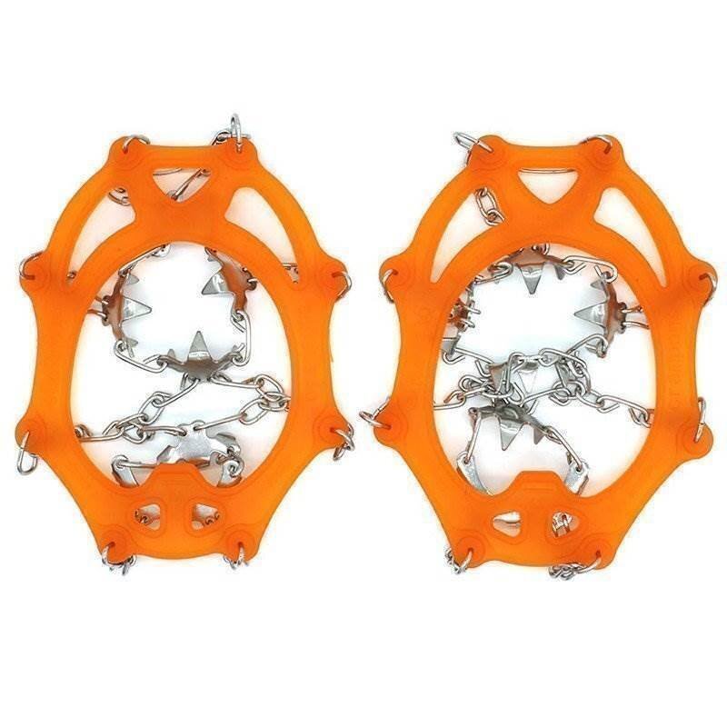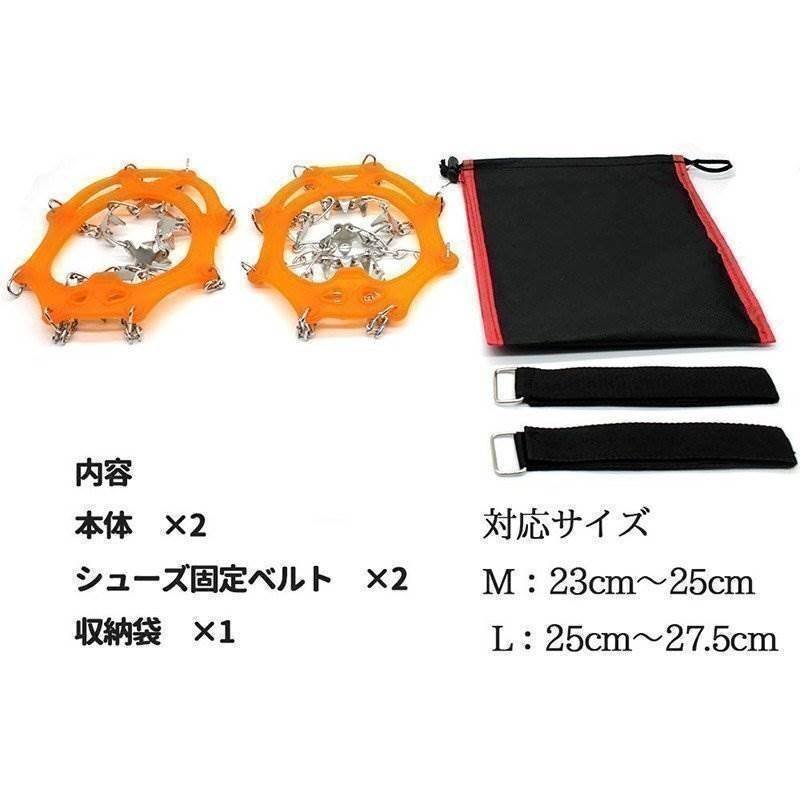 送料0円 スノースパイク [オレンジ] [M] アイゼン 18本爪 アイススパイク 転倒防止 凍結 滑り止め 靴底 雪山 登山 通勤 通学 収納袋付