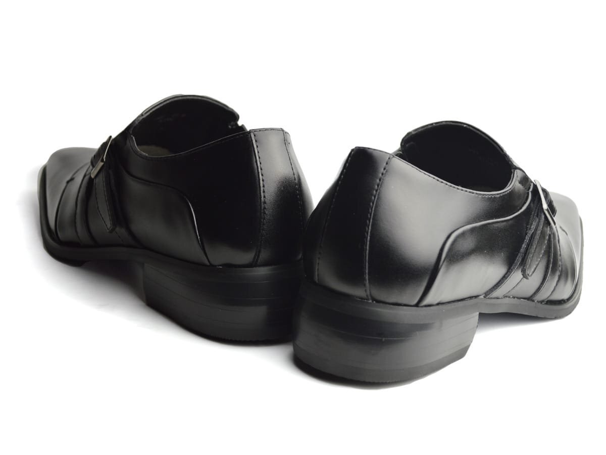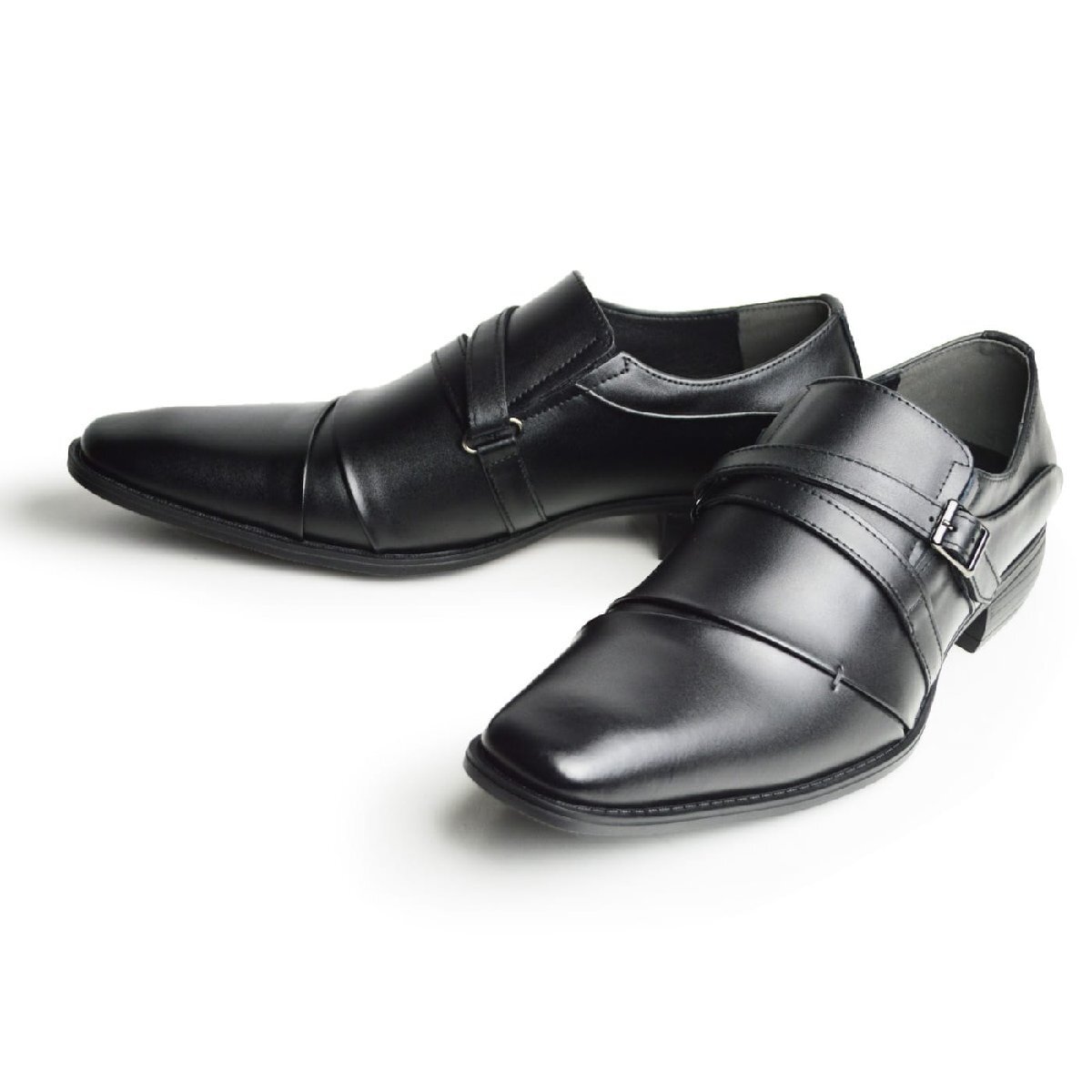 ビジネスシューズ 革靴 サイドゴア スリッポン Wモンク 脚長 スクエアトゥ ロングノーズ 2E 日本製 フォーマル 紳士靴 nc902