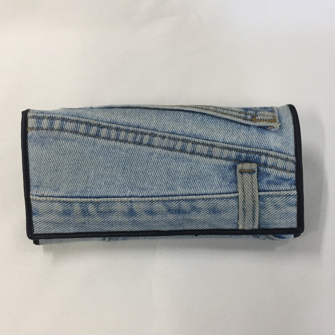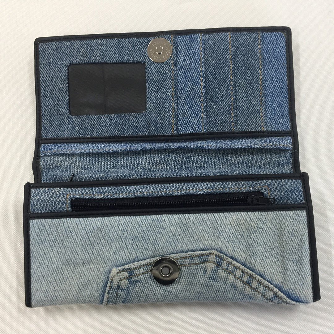 【C10940】送料無料 長財布 デニム ボタン コンパクト カード入れ ICカード 小銭入れ