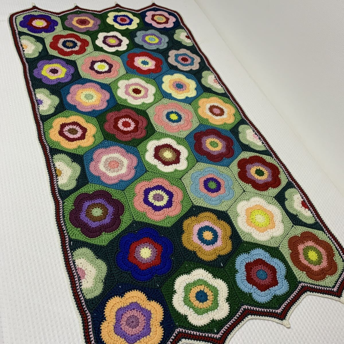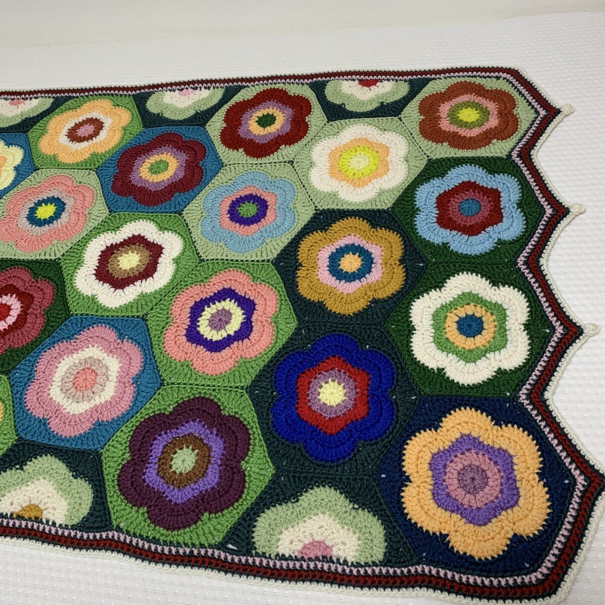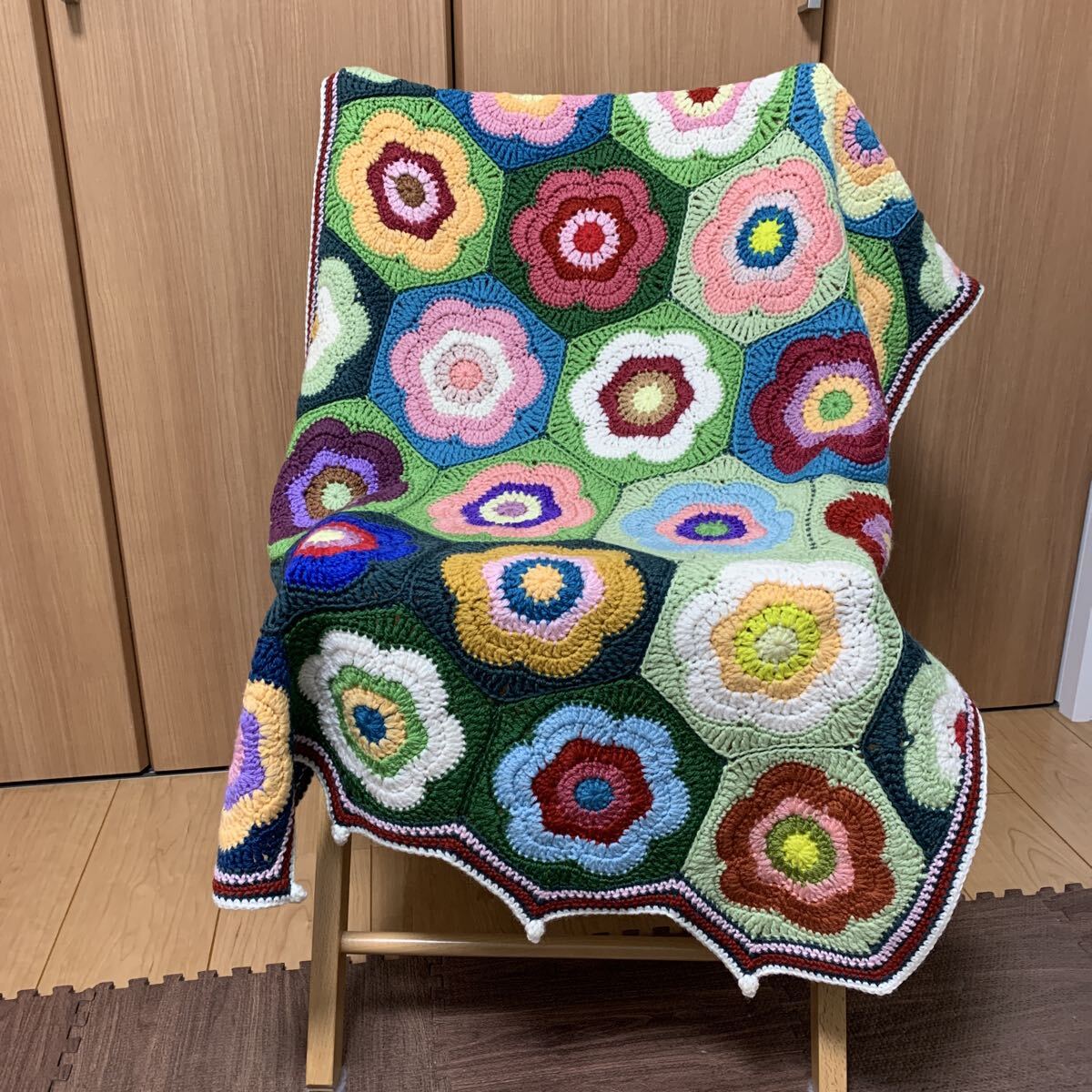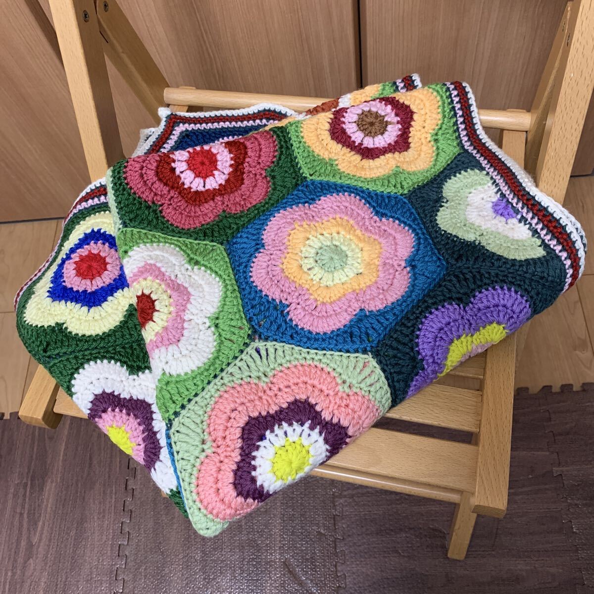 ハンドメイド モチーフ繋ぎのブランケット・敷き物・etc.(かぎ針編み)⑧並太毛糸使用