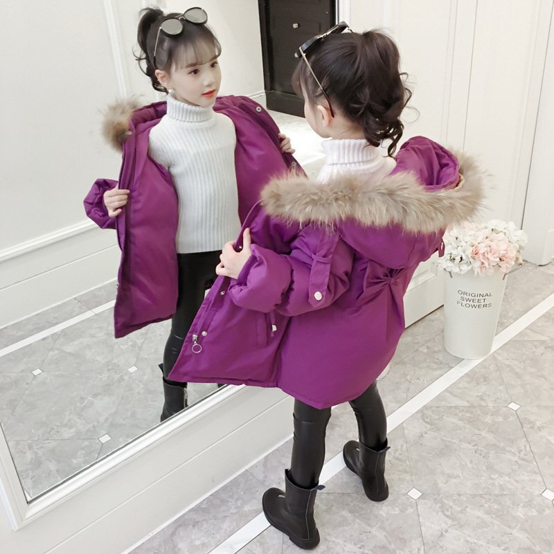 【160cm】ファー付き きれいめ ダウンコート パープル 子供服 アウター 女の子 中綿 モッズコート ロングコート ボア 韓国子供服