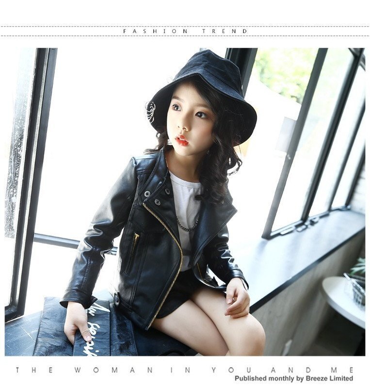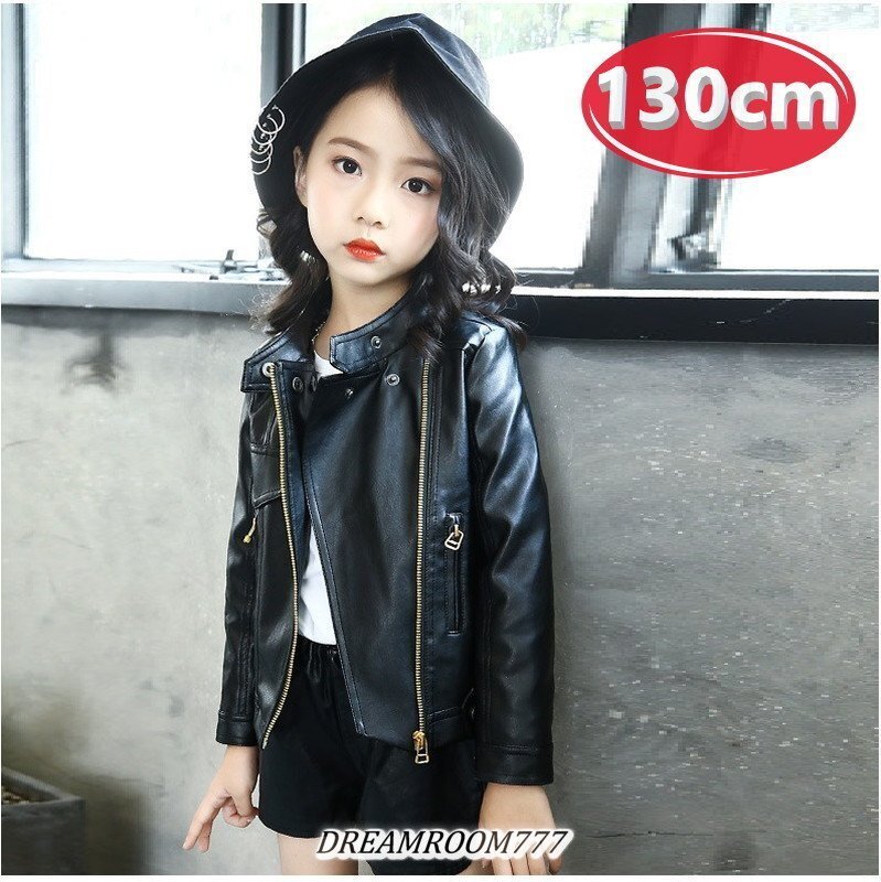 kids girl 2way ライダースジャケット 【ブラック 130cm】 韓国子供服 レザー ハード ライトアウター K-273