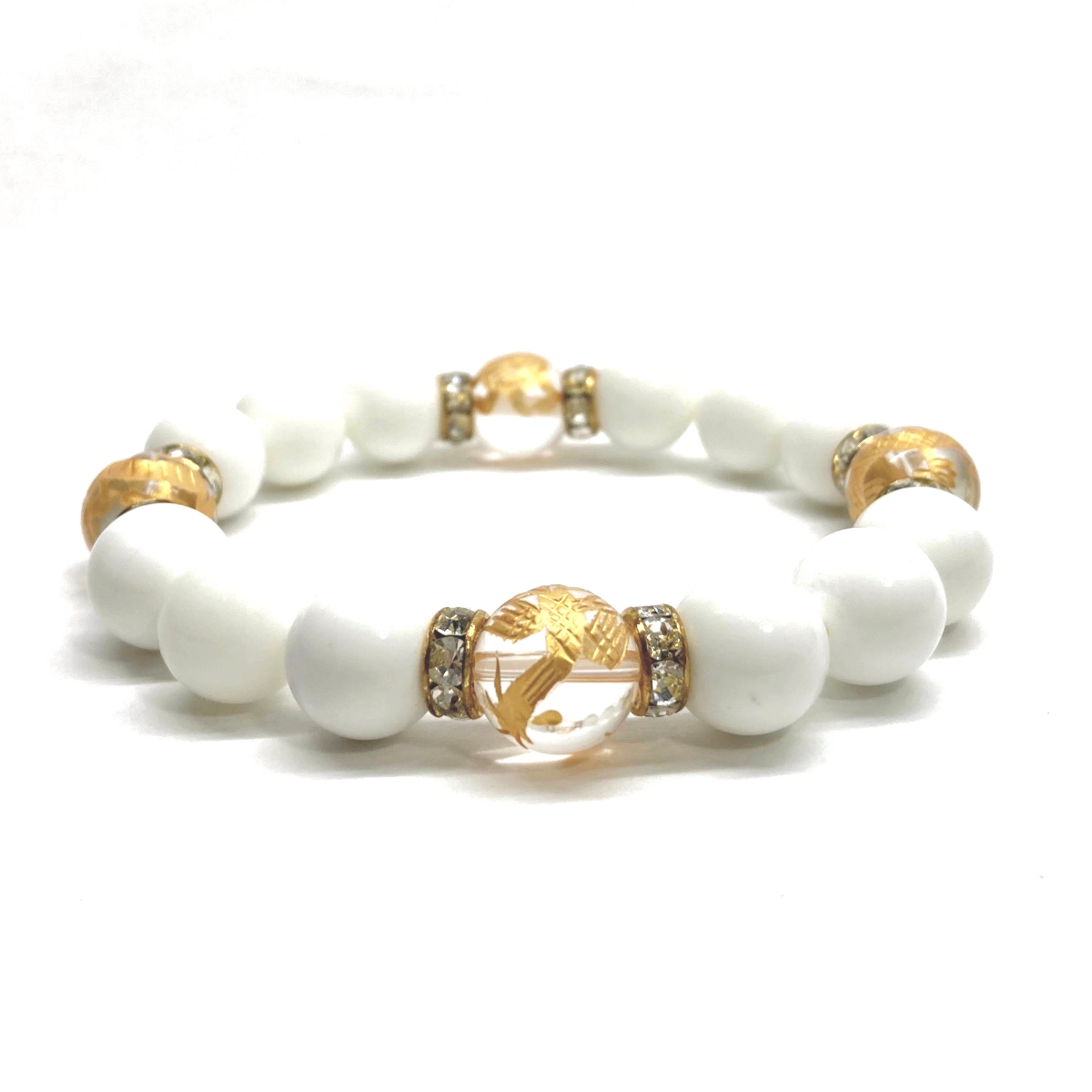 四神獣金彫水晶×ホワイトオニキス 12mm パワーストーン ブレスレット天然石 青龍 白虎 玄武 朱雀 運気上昇 お守り 四神獸 四神相応 G