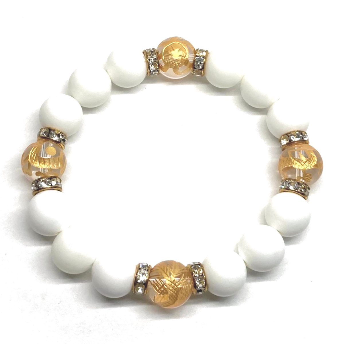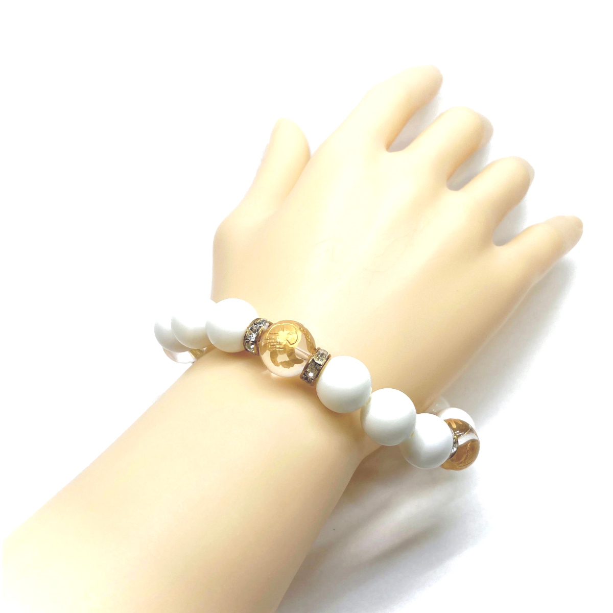 こちらは、四神獣金彫水晶とホワイトオニキスを組み合わせたパワーストーンブレスレットです。四神獣は、中国の伝説で4つの方向(東西南北)を守護する神聖な神。四神獣、厄災から身を守り、多くの運気を呼び込むと言われております。石大きさは程よくインパクトのある12mm玉で内周 約17cmです。 数に限りがございますので気になる方はお早めにどうぞ。