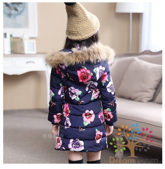 【110cm】 ダウンコート 花柄 フラワー ピンク 子供服 アウター 女の子 中綿 ロングコート 韓国子供服