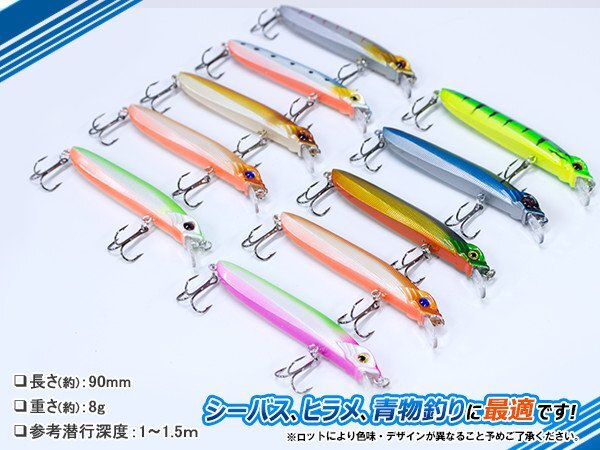 ハードルアー 10個セット ルアーセット ルアー フィッシング ミノータイプ 90mm/9cm 8g 疑似餌 擬似餌 シーバス ヒラメ サバ 鯖 など