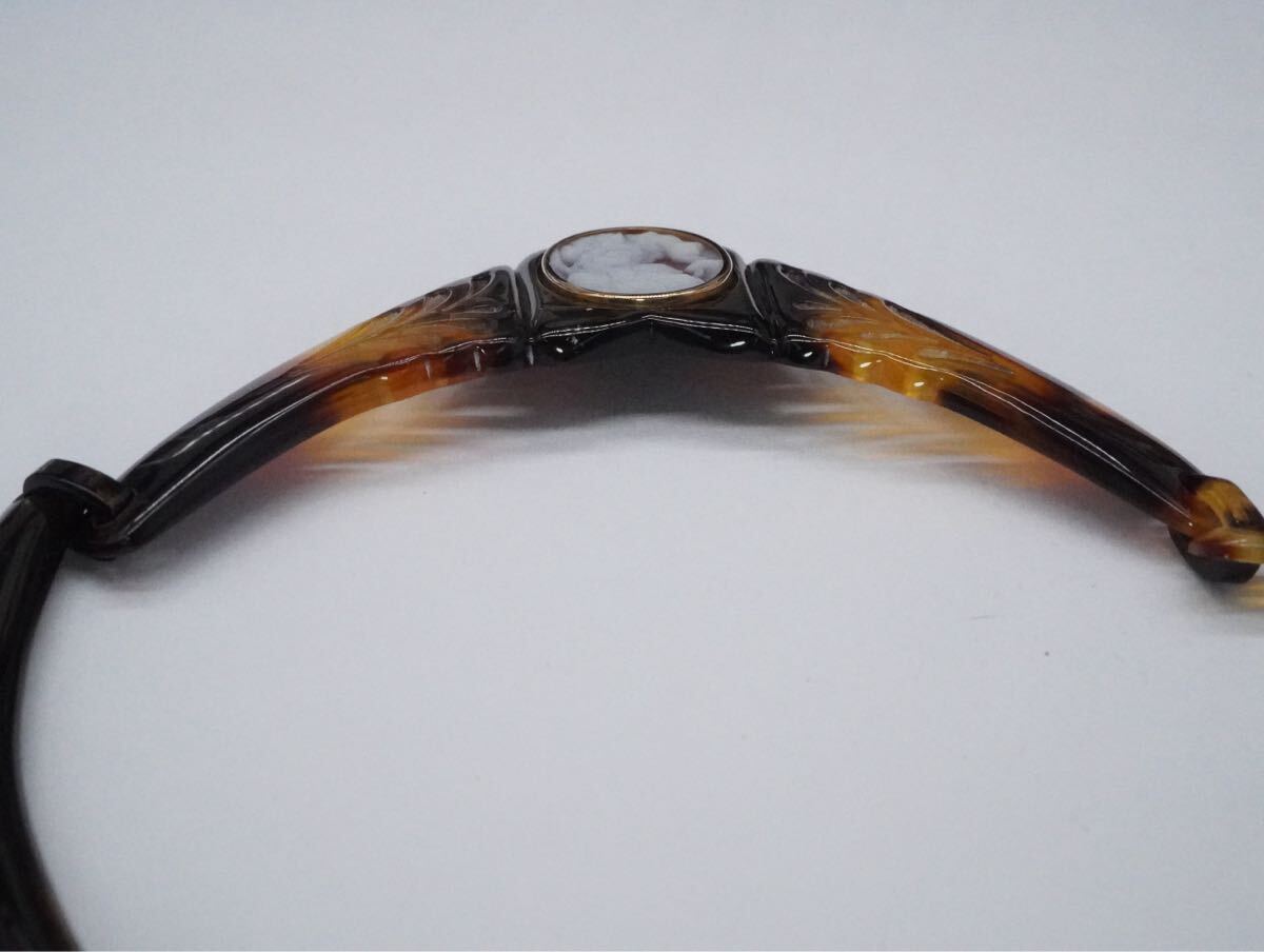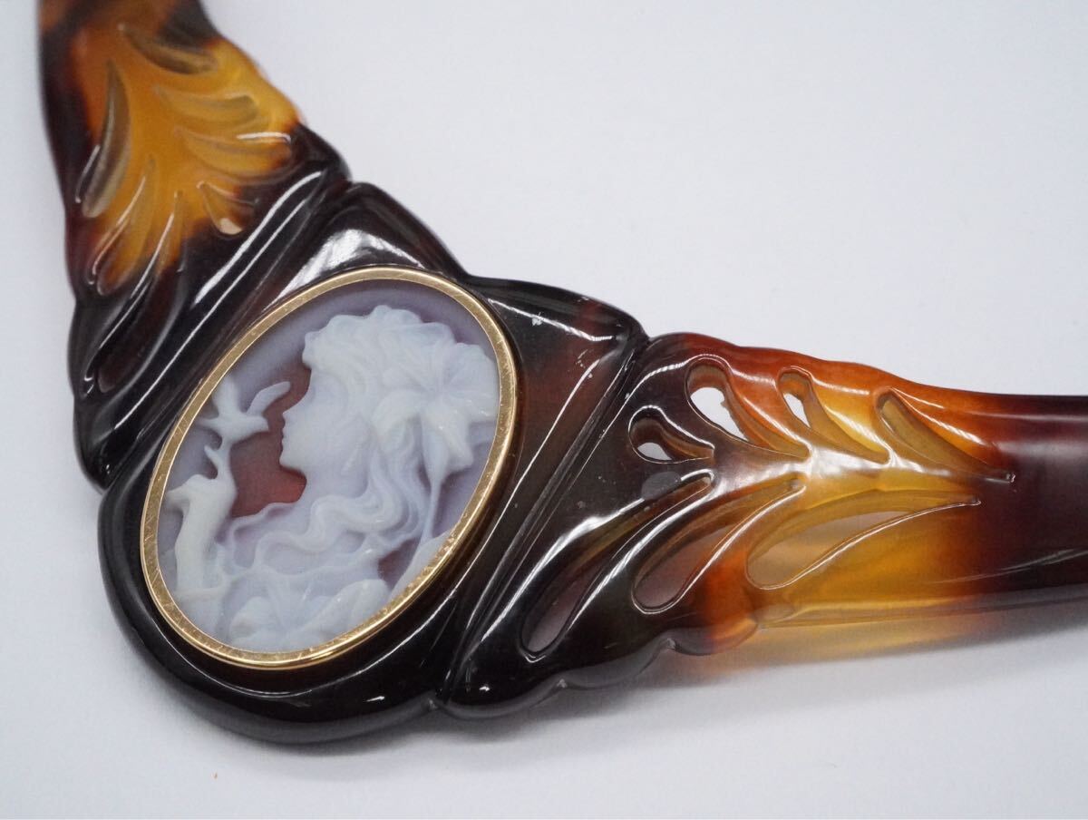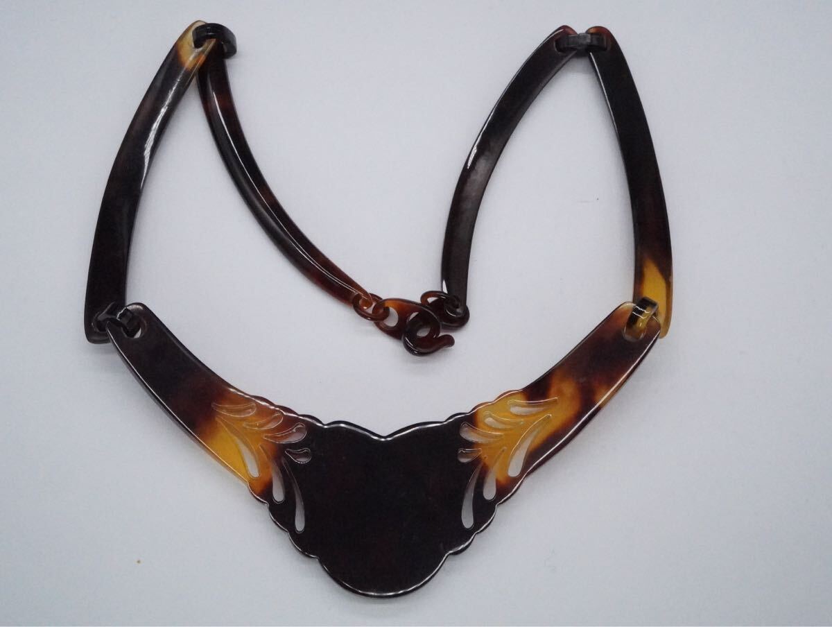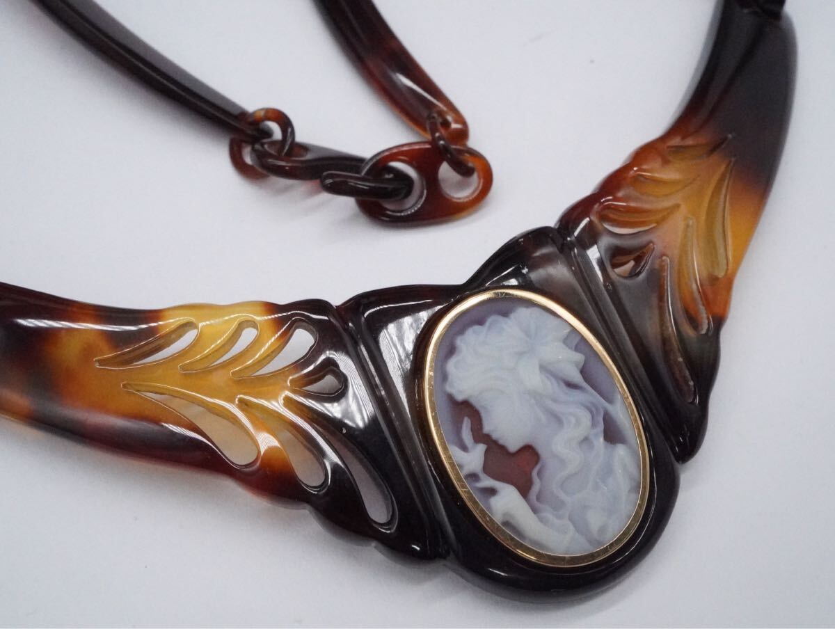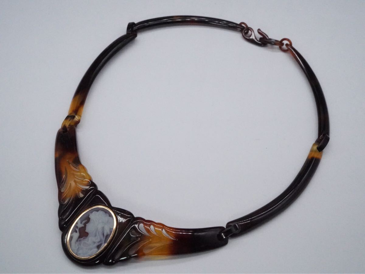 【219】ストーンカメオ 鼈甲 ベッコウ べっ甲 ネックレス 長さ約38cm アクセサリー TIA