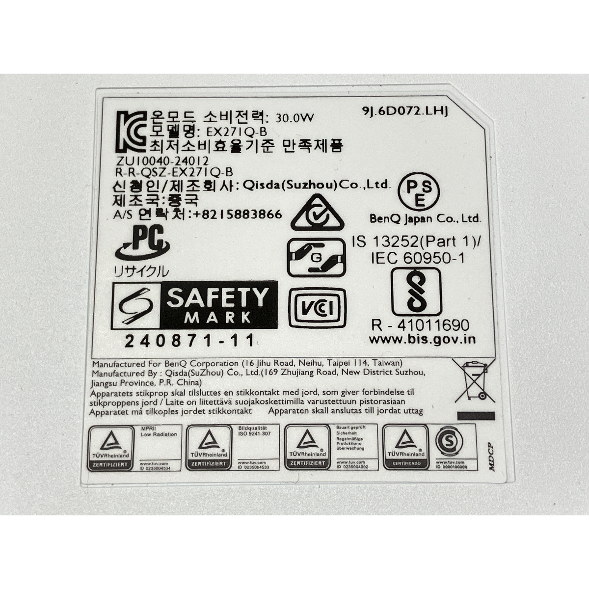 | メーカー名 | BenQ | 型番 | EX271Q |