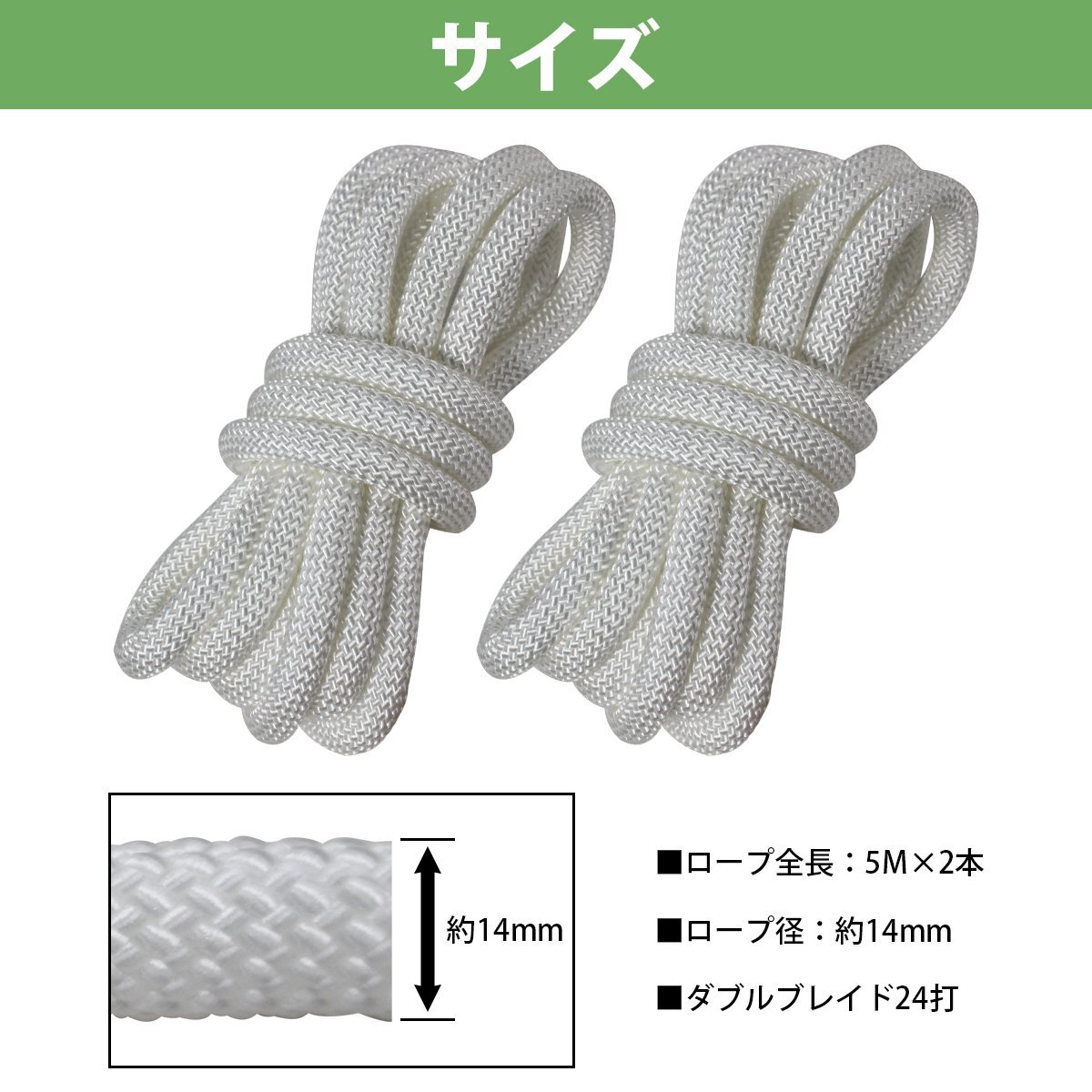 24打 14mm 5m 2本セット 計10m 係留ロープ フェンダーロープ ダブルブレイド 白/ホワイト マリン ロープ 船 係船 14ミリ
