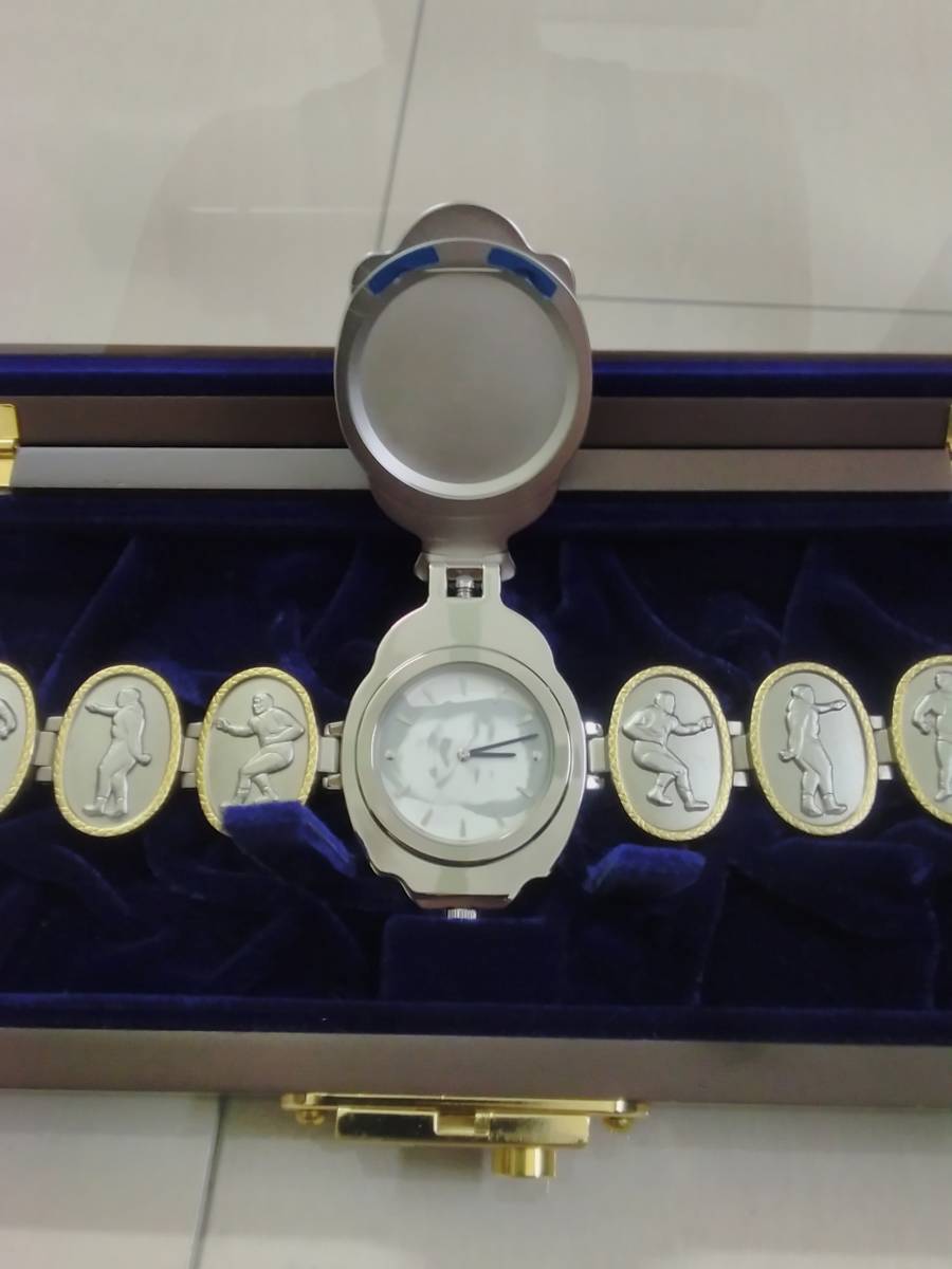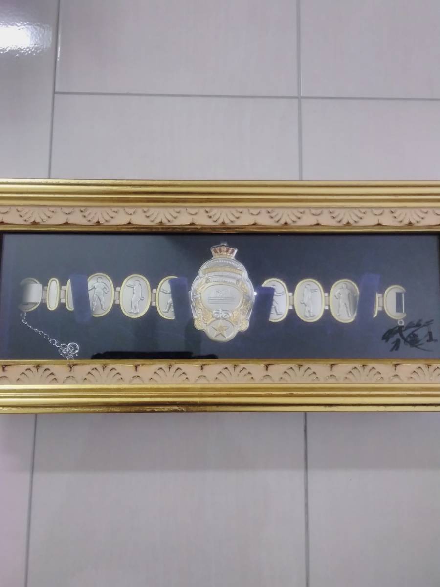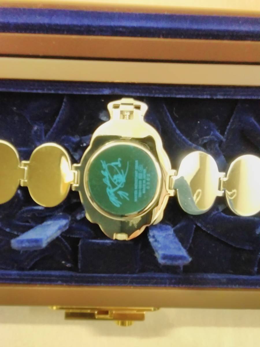 力道山没後40周年を記念したインターナショナル王座ベルト型の腕時計です。鑑賞用にお勧めしますが、実使用したい方は時計店で電池を入れて下さい。ほぼ未使用品ですが、経年による劣化(些細なキズ)等あります。完全品をお求めの方は入札をお控え下さい。NCNRでお願いします。著しく評価の悪い方、新規の方はあらかじめ質問欄より入札の意思をご連絡下さい。オークション終了後24時間以内のご連絡、48時間以内のご入金を頂けない場合は、落札者都合によるキャンセル扱いとさせて頂きます。
