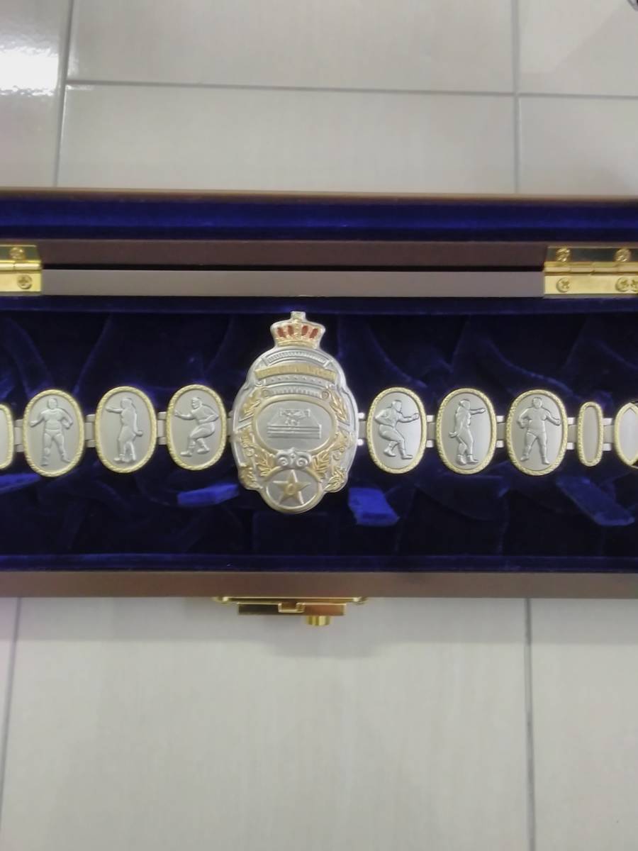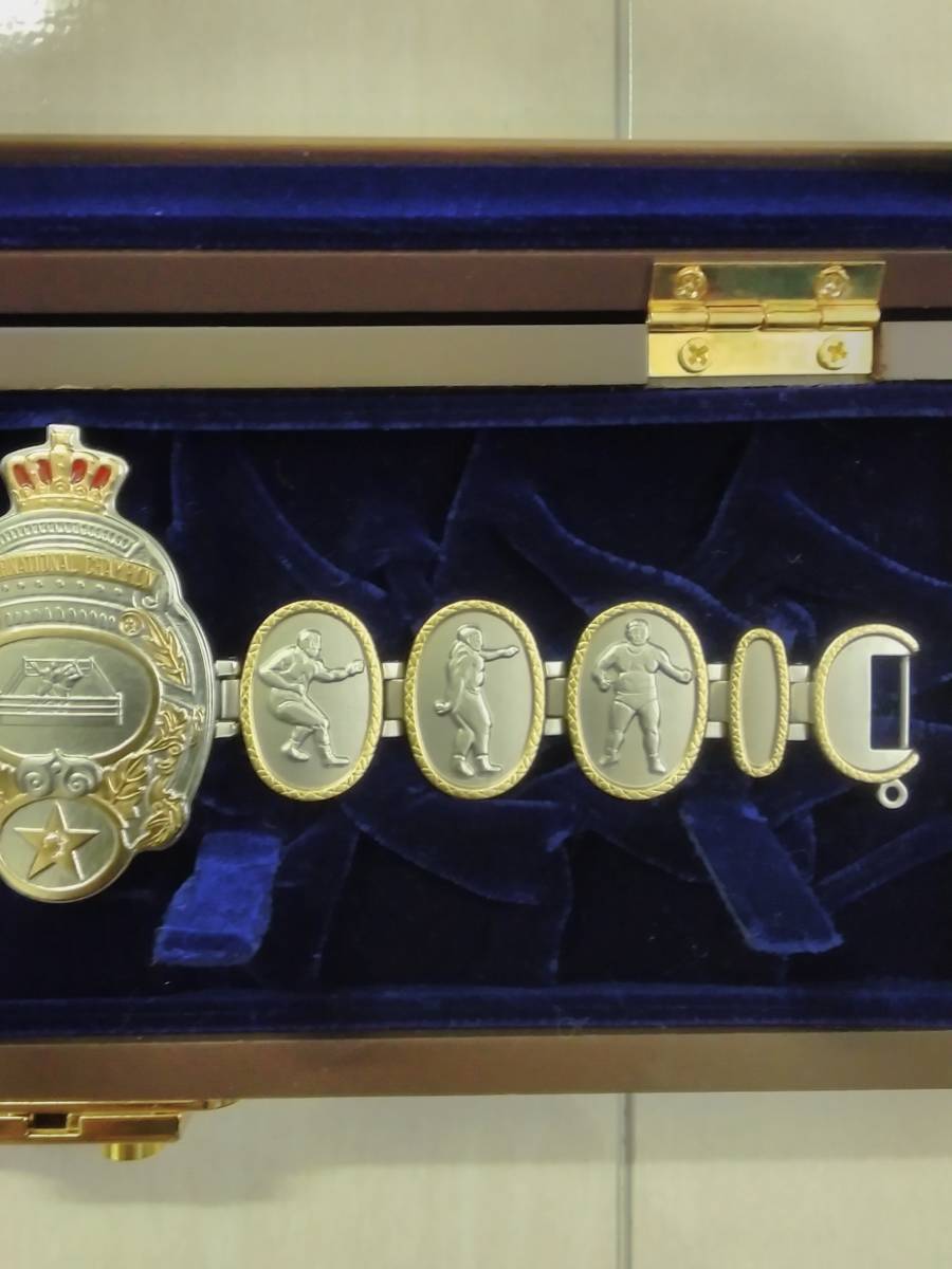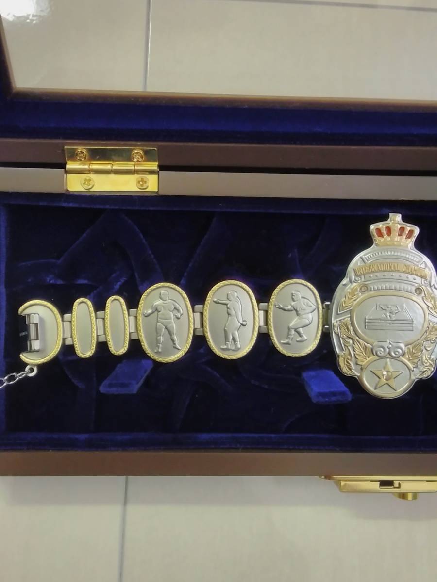 力道山没後40周年を記念したインターナショナル王座ベルト型の腕時計です。鑑賞用にお勧めしますが、実使用したい方は時計店で電池を入れて下さい。ほぼ未使用品ですが、経年による劣化(些細なキズ)等あります。完全品をお求めの方は入札をお控え下さい。NCNRでお願いします。著しく評価の悪い方、新規の方はあらかじめ質問欄より入札の意思をご連絡下さい。オークション終了後24時間以内のご連絡、48時間以内のご入金を頂けない場合は、落札者都合によるキャンセル扱いとさせて頂きます。