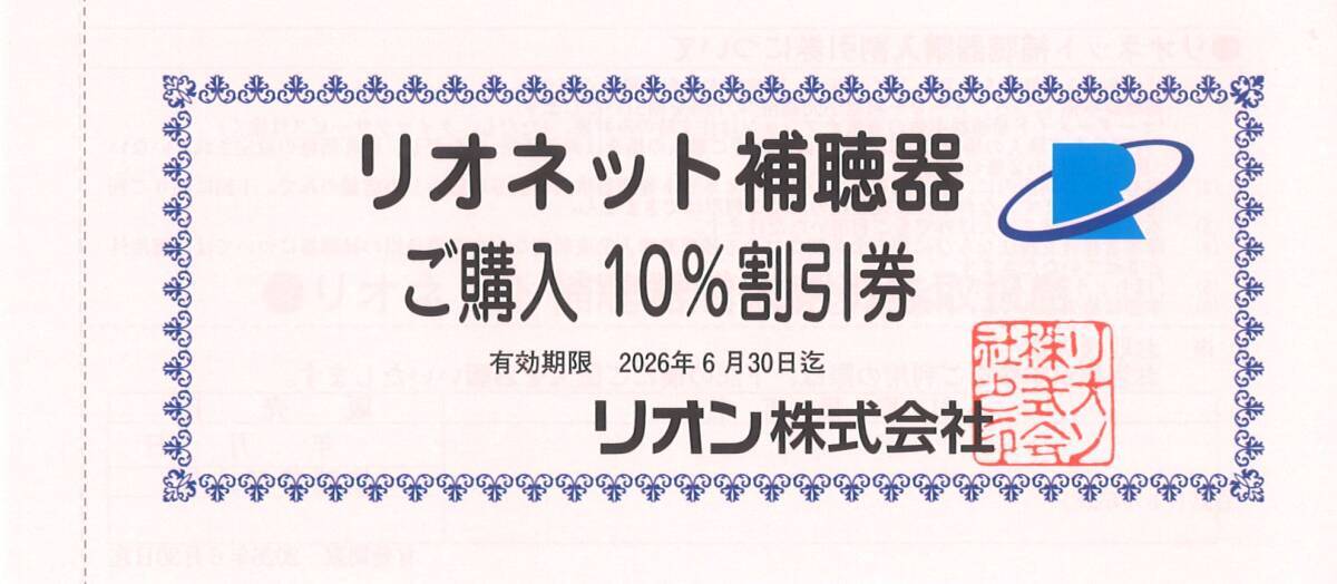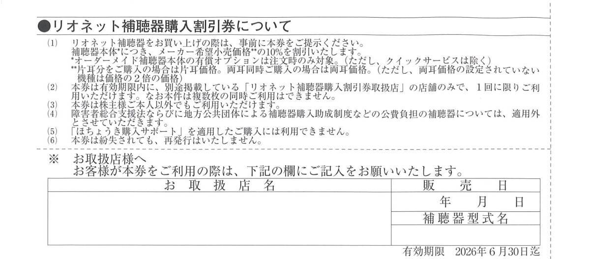 即決!リオン リオネット 補聴器購入割引券 株主優待券 10%割引券