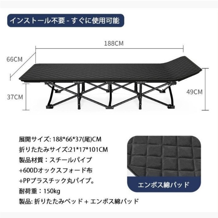 折りたたみ式ベッド 軽量 アウトドアベッド 折り畳み式 簡易ベッド 仮眠 病室 付き添い看護 昼寝 アウトドア キャンプ 収納便利