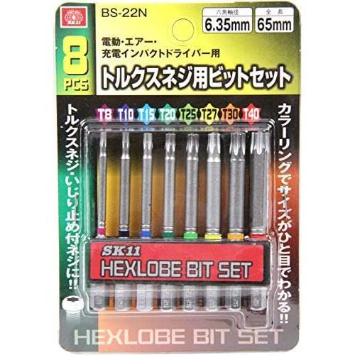 トルクスネジ用ビット SK11(エスケー11) トルクスネジ用ビット 8点セット 65mm BS-22N 六角軸 6.35mm
