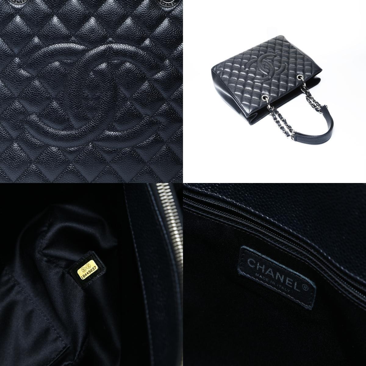 極美品 CHANEL 10番台 2005-2006 GST キャビアスキン シルバー金具 デカココマーク マトラッセ ショルダー トートバッグ ブラック