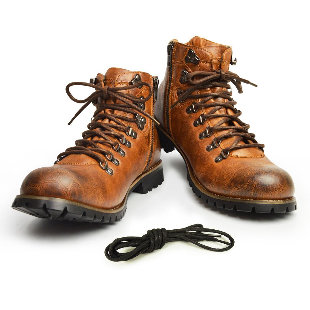 新品■25.5cm メンズブーツ マウンテンブーツ ワークブーツ ヴィンテージ 替え紐つき 幅広 サイドジッパーカジュアルシューズ 幅広 男 靴