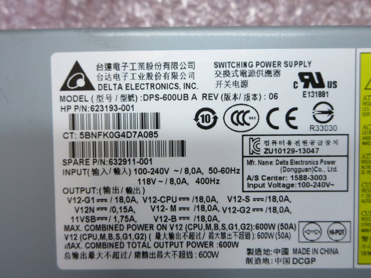 | HP Z420 純正 600W 電源ユニット DPS-600UB A / 623193-001 / 動作品外し / No.Z608 | ||||||||||||||||||||||||||||||||||||||||