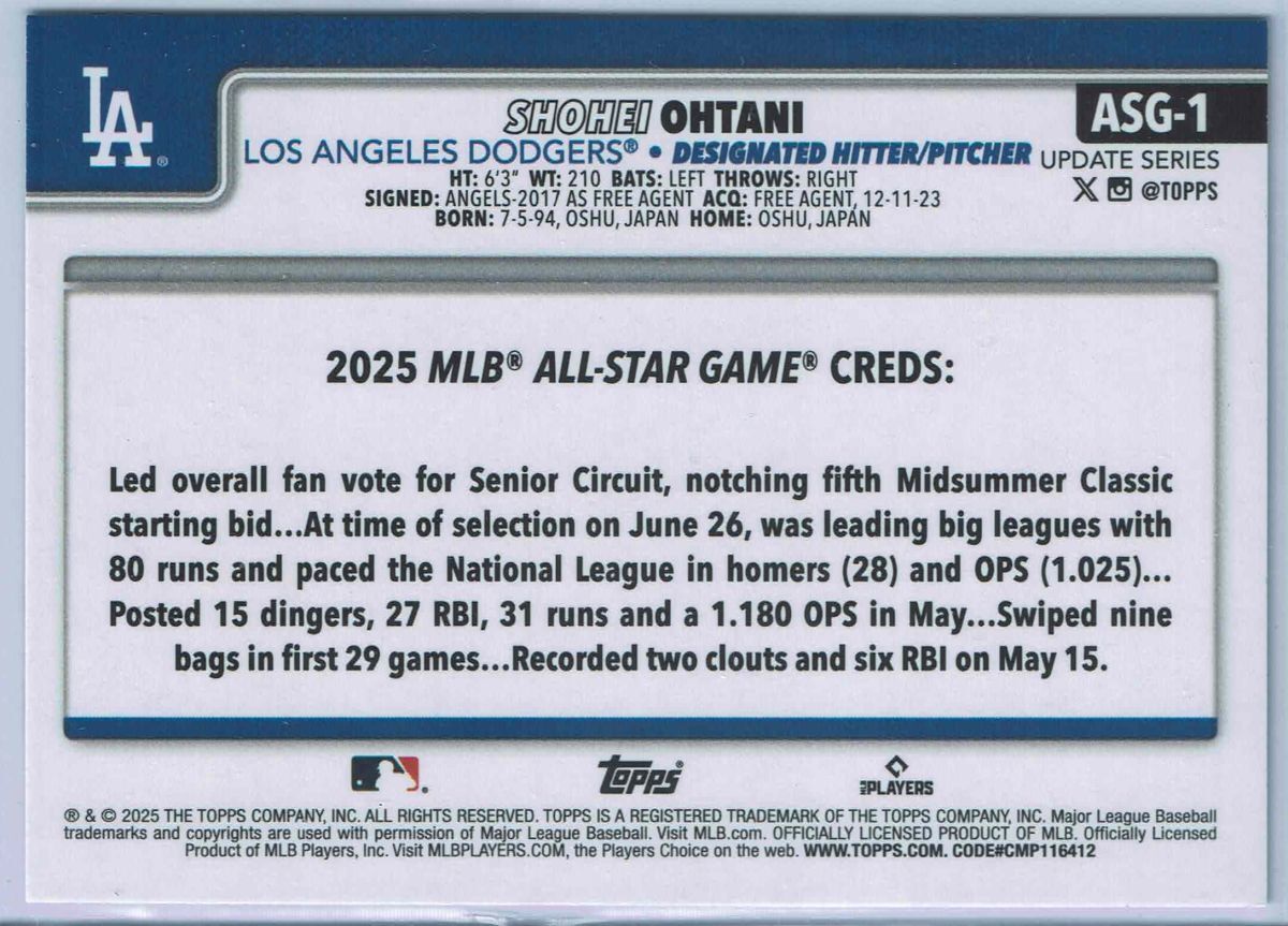 2025 Topps Update #ASG-1 大谷翔平 Shohei Ohtani オールスター All-Star Foil キラ - Dodgers ドジャース