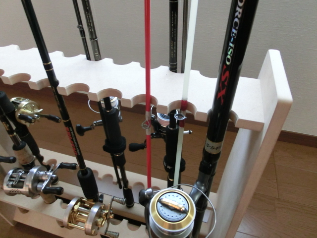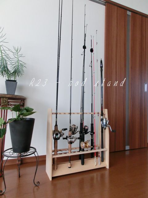 ★新品23本掛けロッドスタンド★ ★木工職人による手作りです。ロッド立て部分の面取りもしてますので、大変綺麗に仕上がっています。 ★サイズ・・高さ600mm、幅605mm、奥行180mm、板厚12mm、受口直径33mm。 ★本商品は組立て式になっております。説明書を同封していますので、ドライバー1本で5分以内で組立てはできるかと思います★材質は中密度圧縮合板です★ 注意・・・ロッドスタンド以外の商品は付属致しません。ロッドスタンドのみです。 ★他にも多数出品しておりますので、宜しくお願い致します★ |