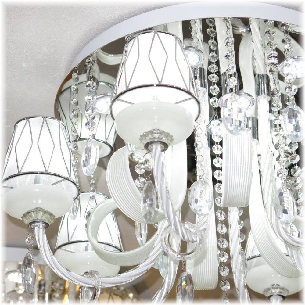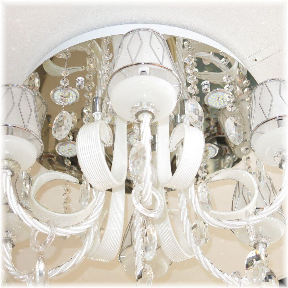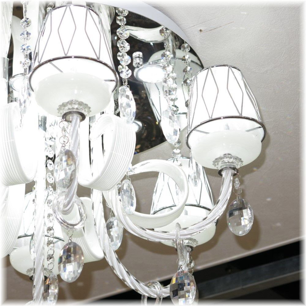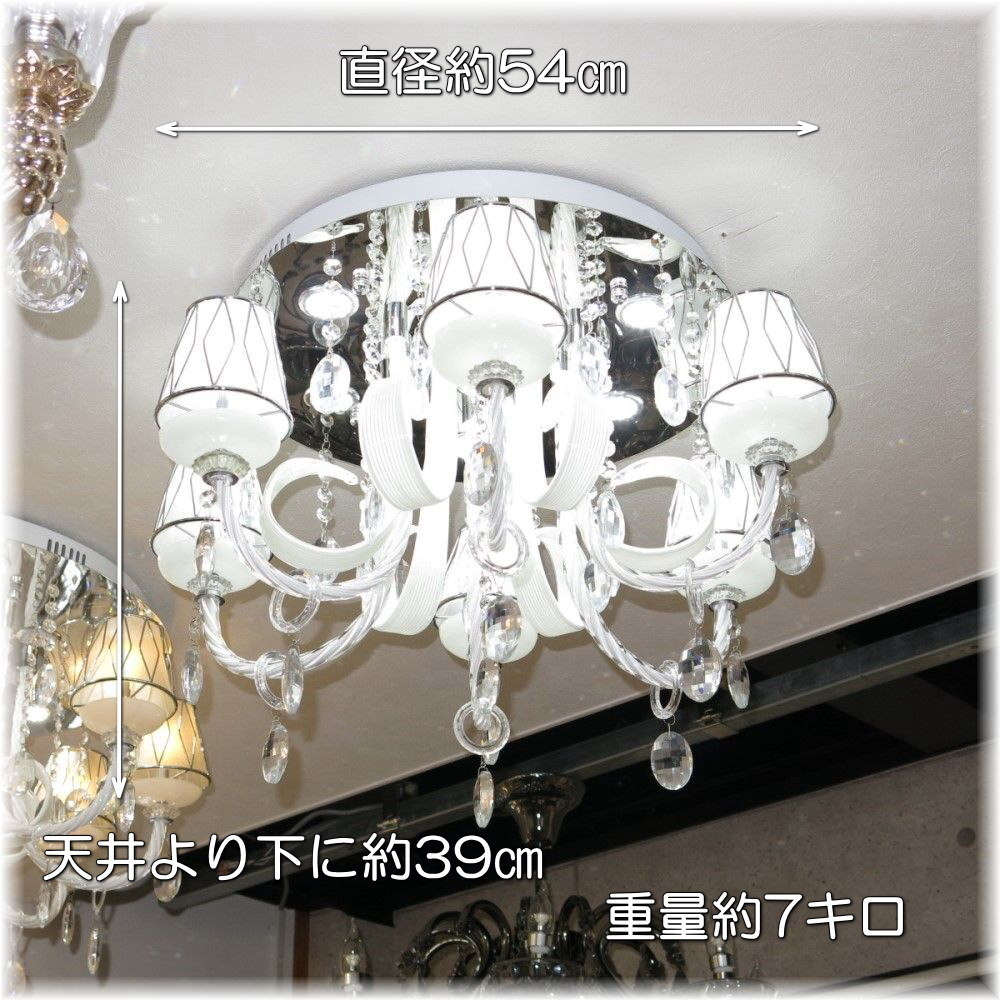 ![]() 【送料無料!】★超激安LED照明!★新品 綺麗な スワロフスキー風 クリスタル シャンデリア LED&リモコン付き ●LED球6個&LEDダウンライト9個(¥18300-相当)お付けいたしまして驚きのプライス! ●消費電力わずか67ワットで670ワットの明るさ! ☆スワロフスキー風上質水晶ならではの最高の輝きを放つ新品クリスタルシャンデリア ☆添付画像では肉眼で見る本来のクリスタルの輝きをご確認いただけませんが、合計15灯のLED電球が上質クリスタル水晶を通し光の屈折で光の持つ本来のカラーをかもし出しダイヤモンドのように輝きながらワット数以上の明るさでお部屋を照らします ☆スタイルは飽きの来ないシンプルなデザインでホワイトのデザインガラス&シェードともよくマッチしとても綺麗なシャンデリアです ☆とても明るく消費電力わずか67ワット・670ワットの明るさでお部屋全体を照らします ☆リモコンも付属しており全15灯全灯~ダウンライト9灯点灯~LED電球6灯点灯~消灯の切り替えが可能です ☆シャンデリア本体調光にも対応しておりお好みの明るさに調整可能です ※調光が必要の場合は汎用調光器と調光対応LED(1個¥200-アップ)が必要でリモコンとの併用は不可です ☆調光ご希望の場合はご注文後お申し付け下さい ☆リビング等に最適なゴージャスでとても綺麗なクリスタルシャンデリアを是非この機会に! ☆サイズ・直径約58cm 高さ約39cm 重量約7キロです ☆付属電球 ☆LED電球6個(白色・明るさ20ワット消費電力2ワット・20lm/W) ☆LEDダウンライト9個(白色・明るさ50ワット消費電力5ワット・50lm/W) ☆暖色LEDも出品させて頂いております、商品画像は白色LEDを装着し撮影しております ☆取り付けに関しましては引掛けシーリング対応不可直付けタイプになります ![]() | |