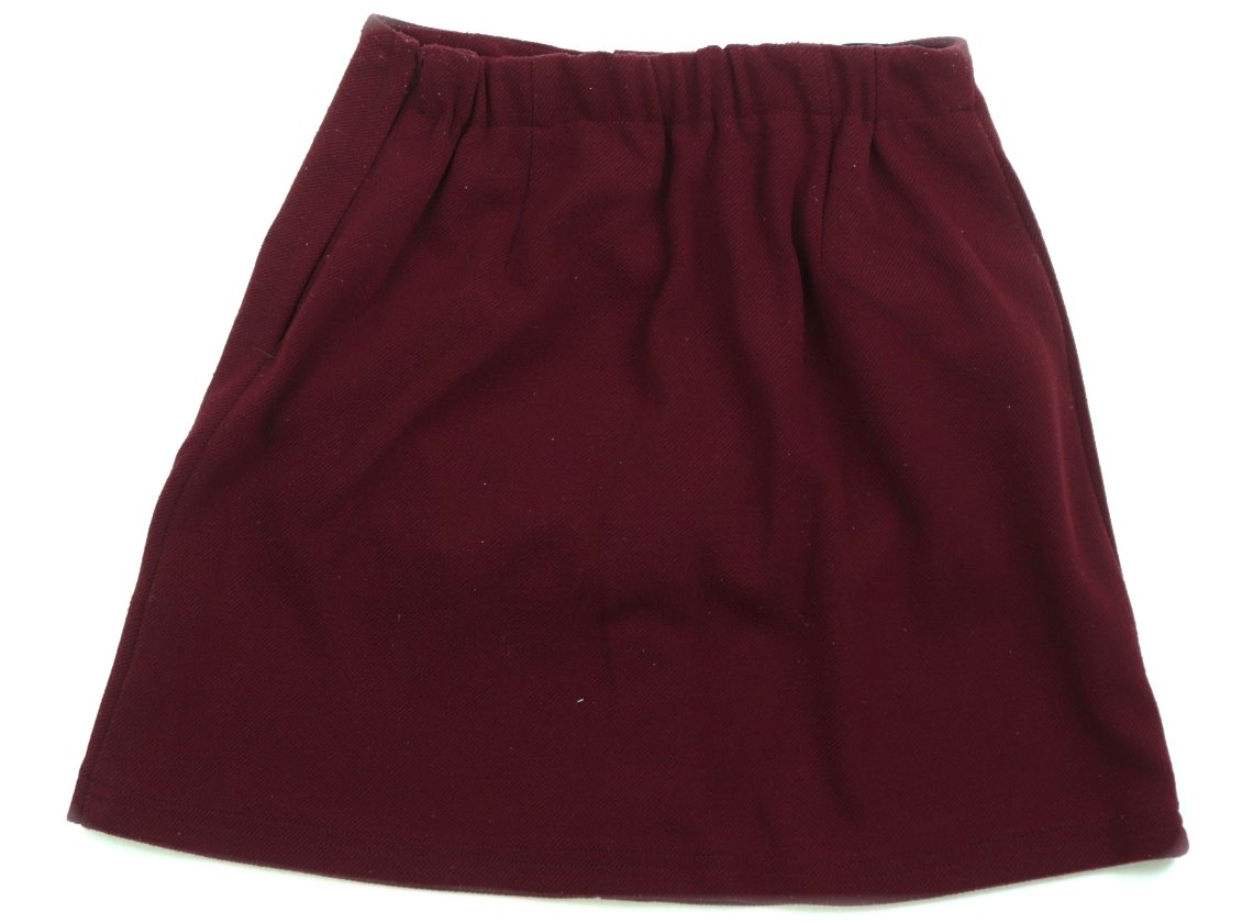 ポリエステル素材。インナーパンツ一体型、。脇ファスナーあきで、ウエストにはサイズ調整ゴムが付いています。毛羽立ち・毛玉感があります。