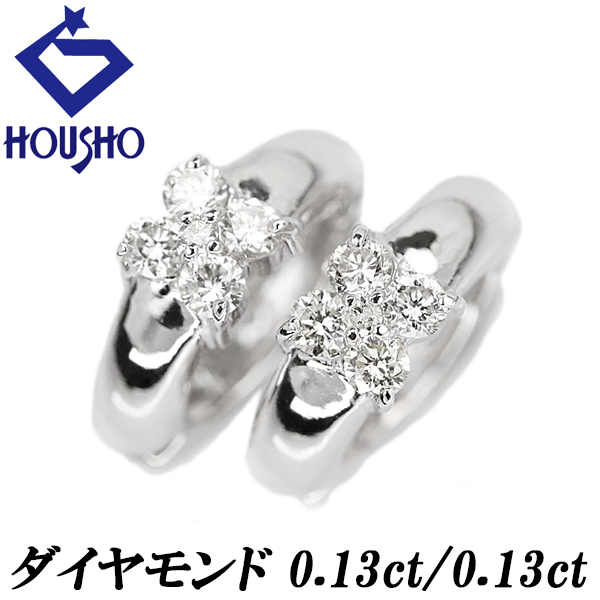 【セール開催中】ダイヤモンド イヤリング K18ホワイトゴールド フープ 花 フラワー 植物 ボタニカル 送料無料 中古 宝正 902506