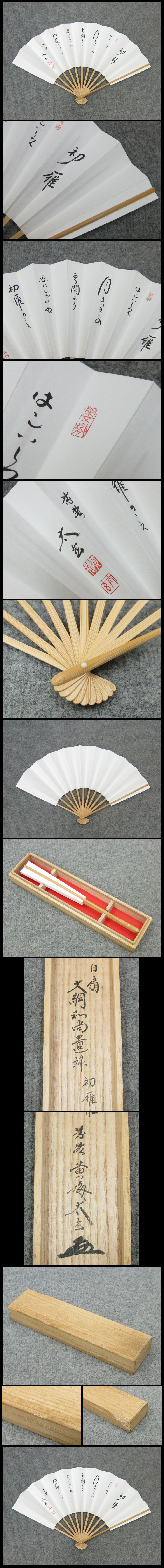 ★商品サイズ★ 開いた寸法 27×45.5cm ★商品の状態★ 扇子は良い状態です。箱にソゲがあります。 その他経年に伴う汚れやスレ、少しのあたりがあると思います。 詳しくは画像にてよく確認のうえでご検討いただければと思います。 どうぞよろしくお願いいたします。 |