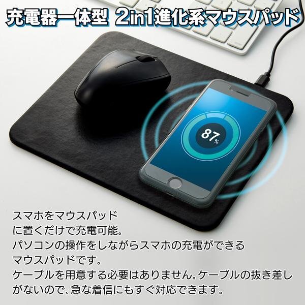 スマホ充電 マウスパッド 置くだけ充電 ワイヤレス充電機能 レザー調 薄型 プレゼント パソコン 送料無料 3M◇ 充電マウスパッド