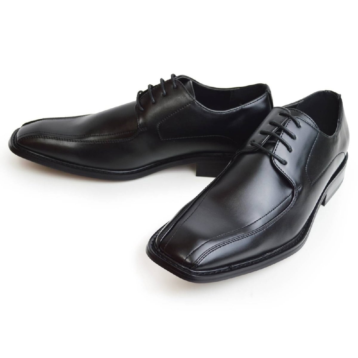 新品■27cm ビジネスシューズ 冠婚葬祭 メンズ フォーマル 革靴 2E レースアップ スワールモカ スクエアトゥ 防滑 脚長 ロングノーズ